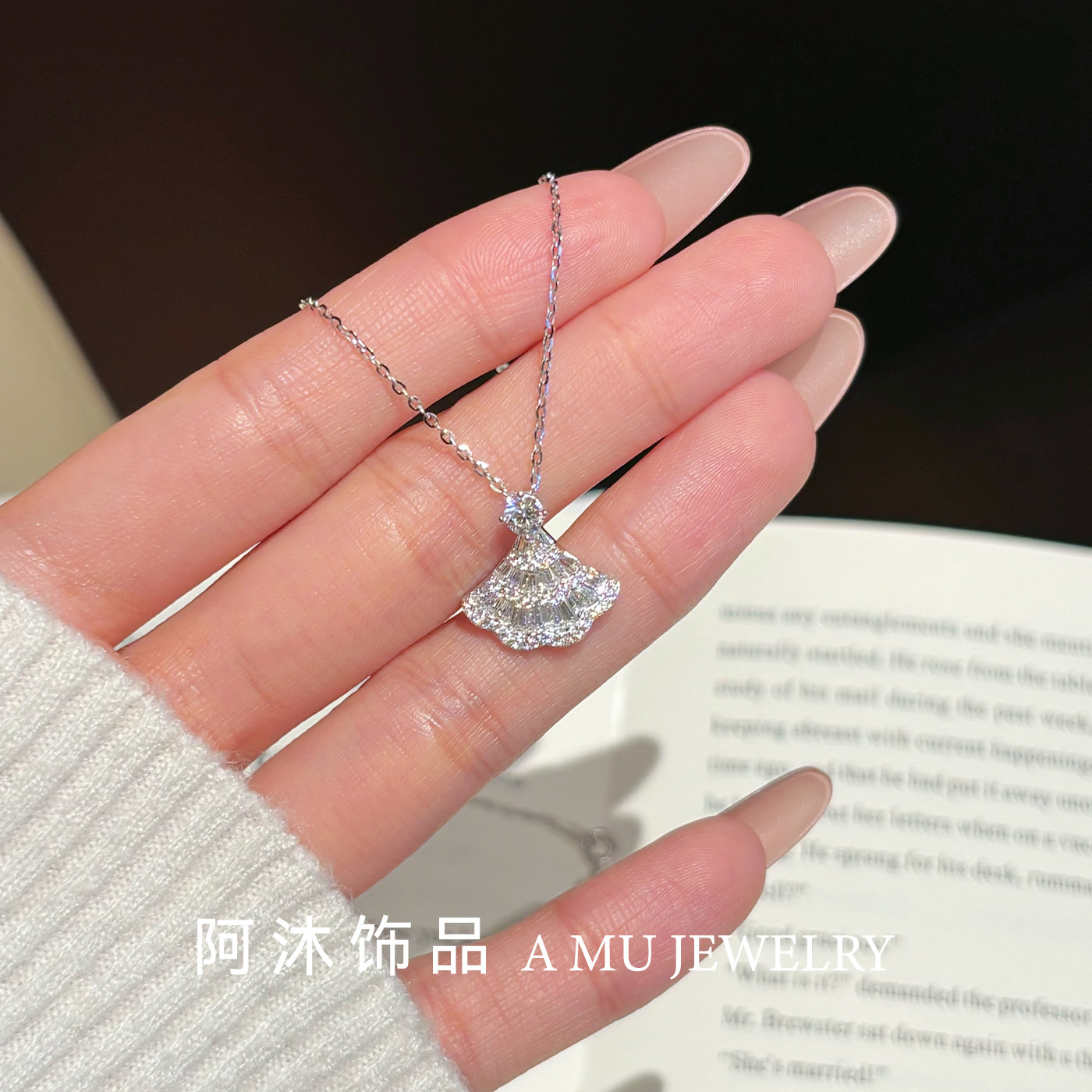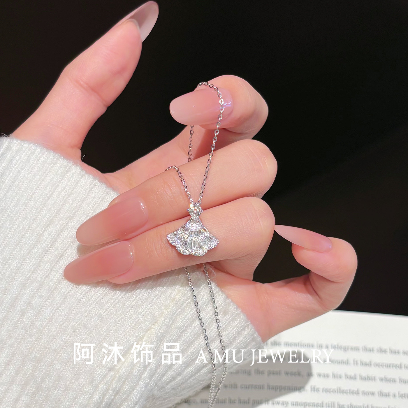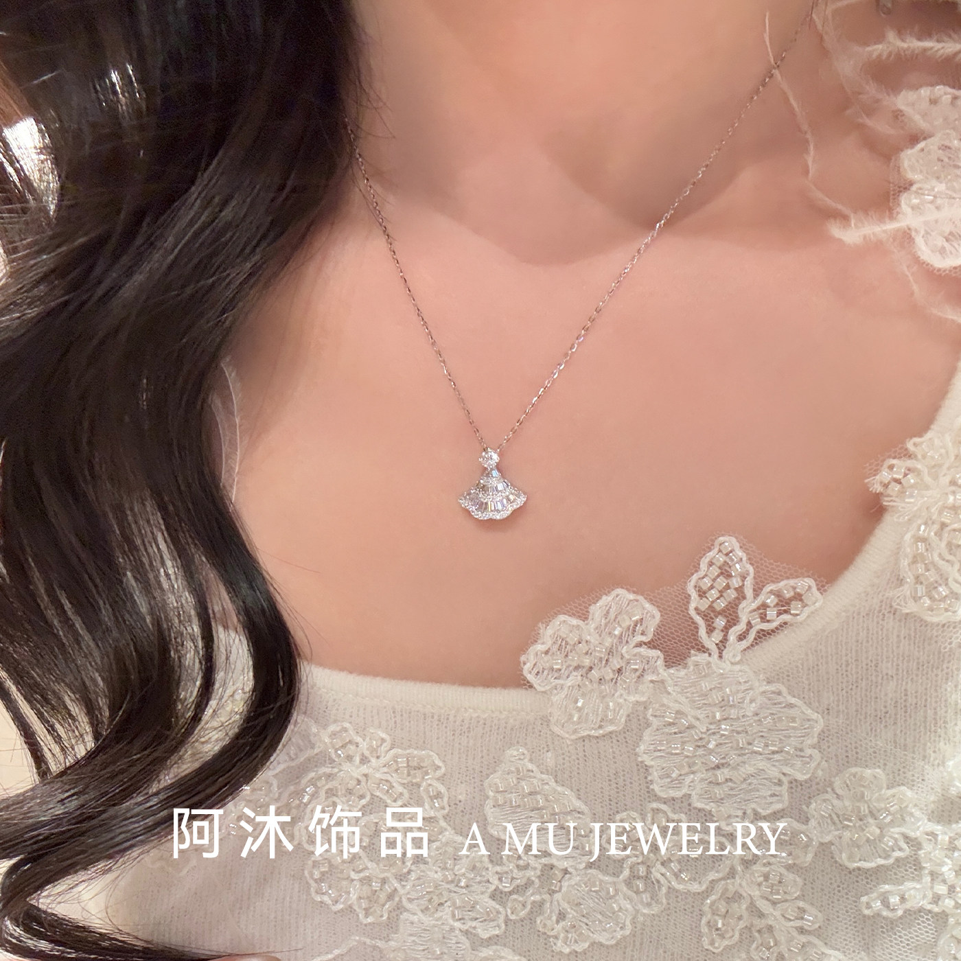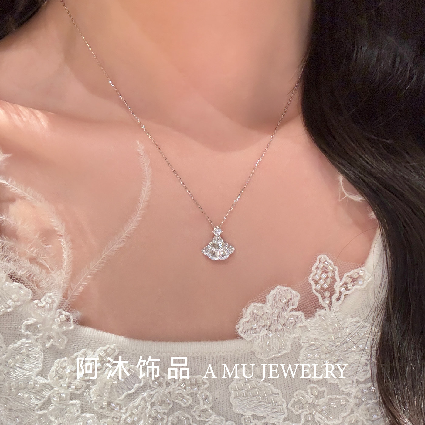阿沐饰品莫桑钻满钻小裙子纯银项链女轻奢小众百搭高级感生日礼物