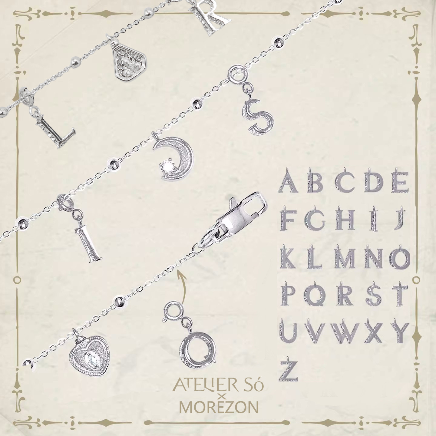 MOREZON【ATELIERSO】26春夏新款潮人时尚爱心香水瓶字母手链银色