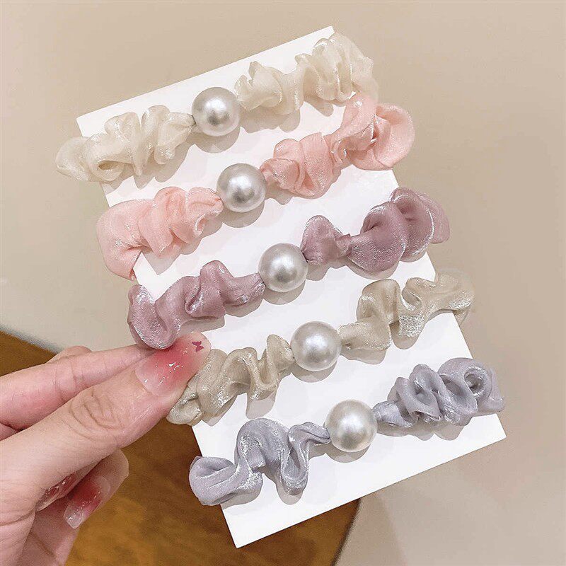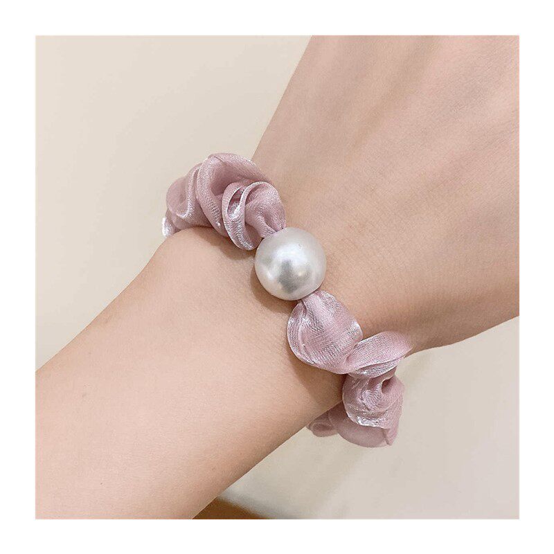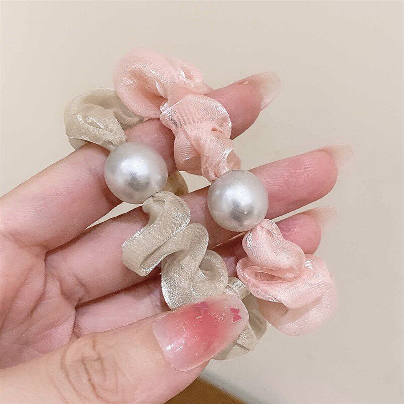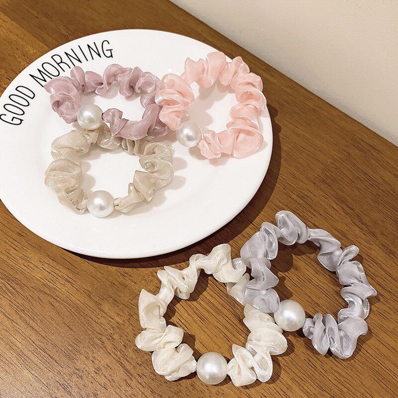 韩系超仙欧根纱仿珍珠发圈头绳轻奢感发饰扎丸子头发绳皮筋女生
