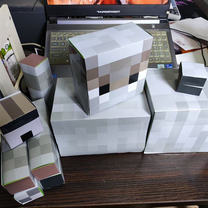 我的世界猫纸模型可动玩具像素小狗仿真狼模型立体折纸摆件可遛狗