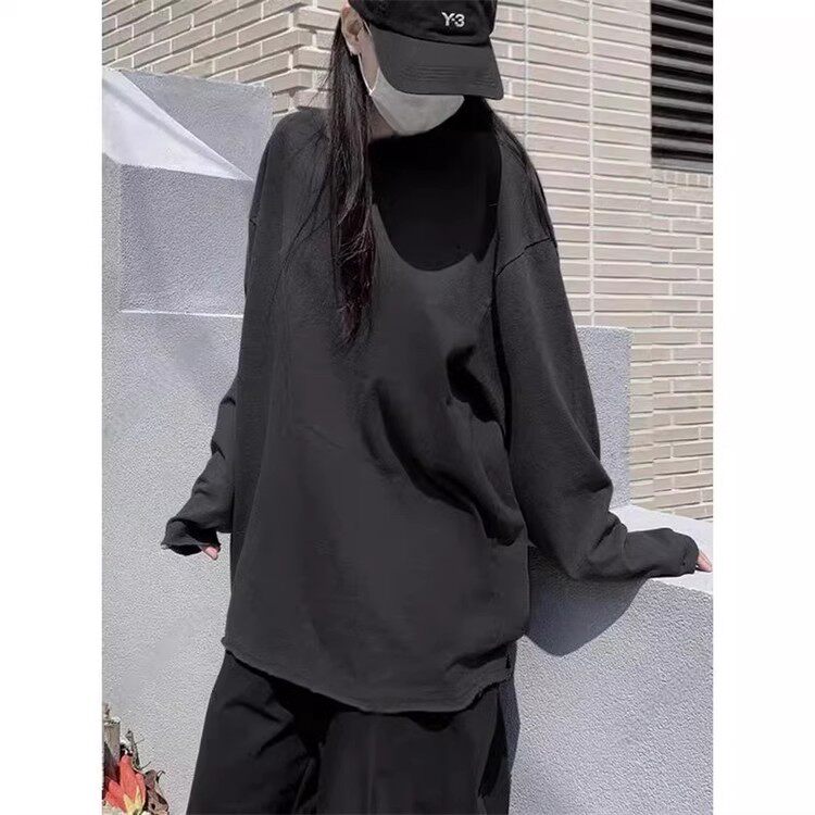 国内现货!代购时尚嘻哈潮流damage磨破做旧打底长袖T恤男女款