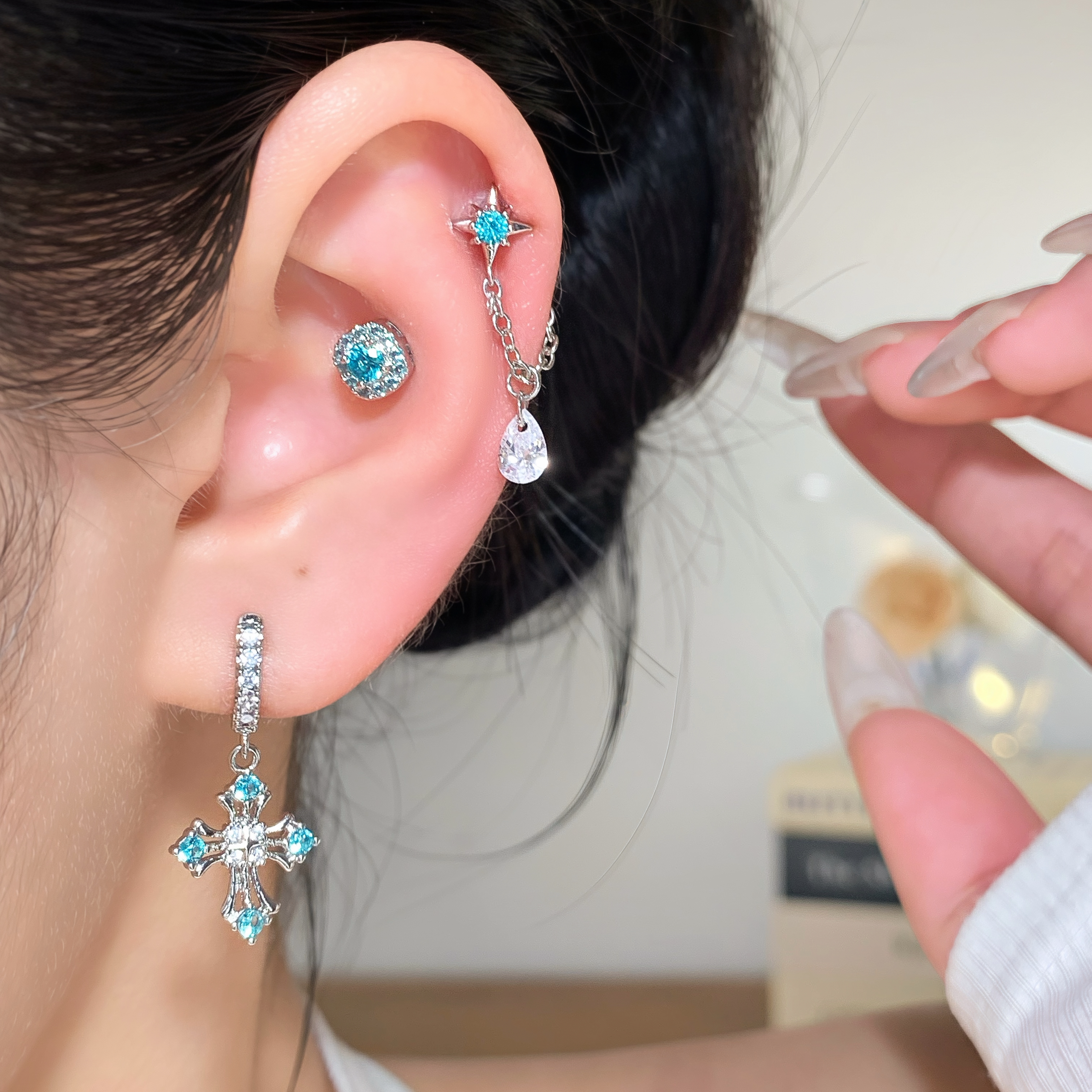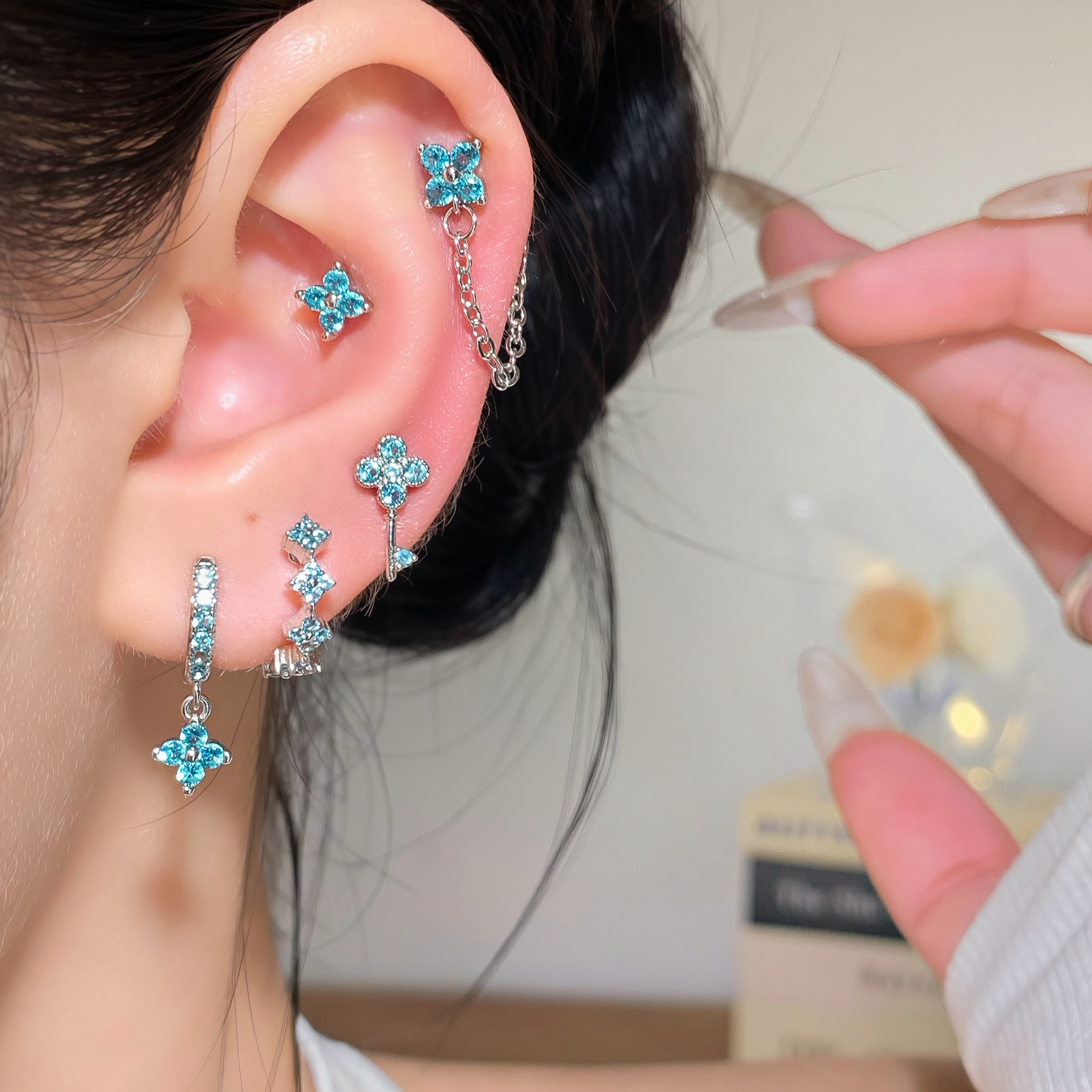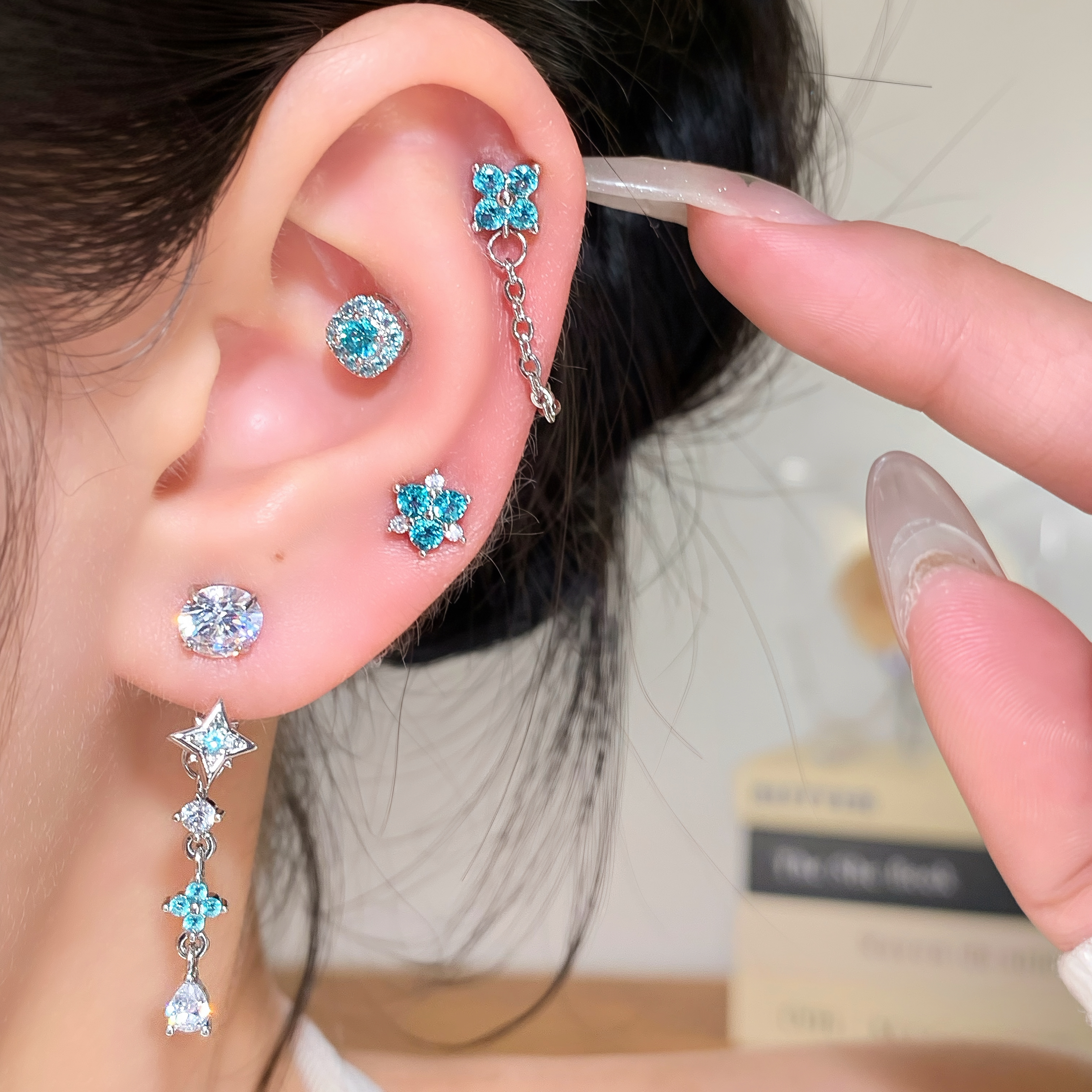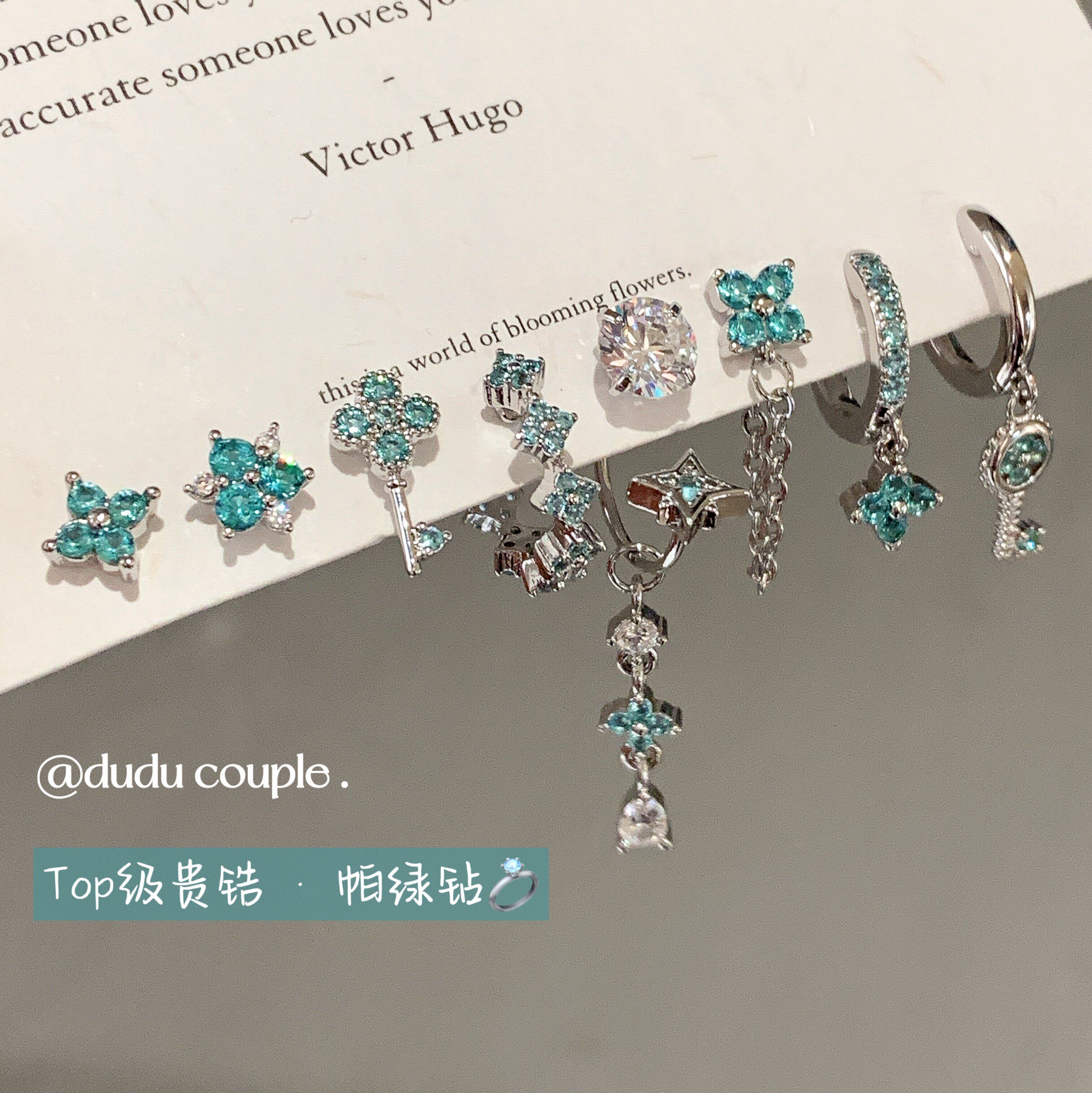 嘟嘟夫妇高级感绿色耳蜗耳骨钉医用钛钢睡觉免摘马蹄环耳钉耳扣女
