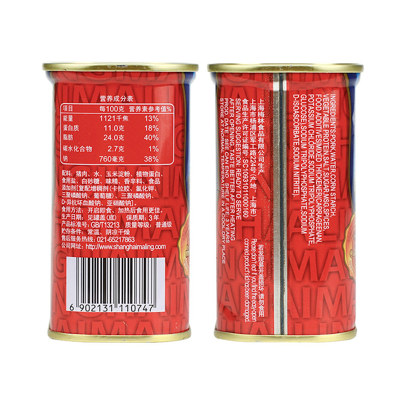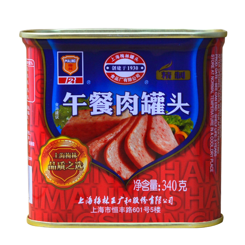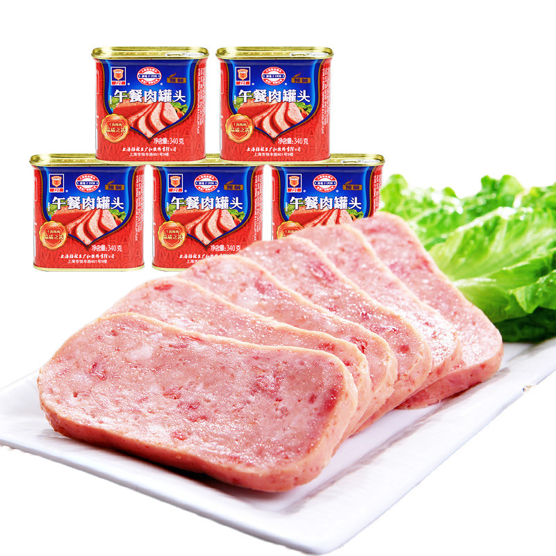 上海特产梅林精制午餐肉罐头340g*5罐早餐面包户外即食肉制品