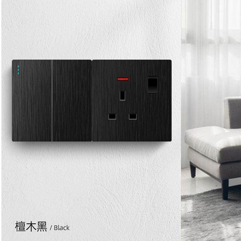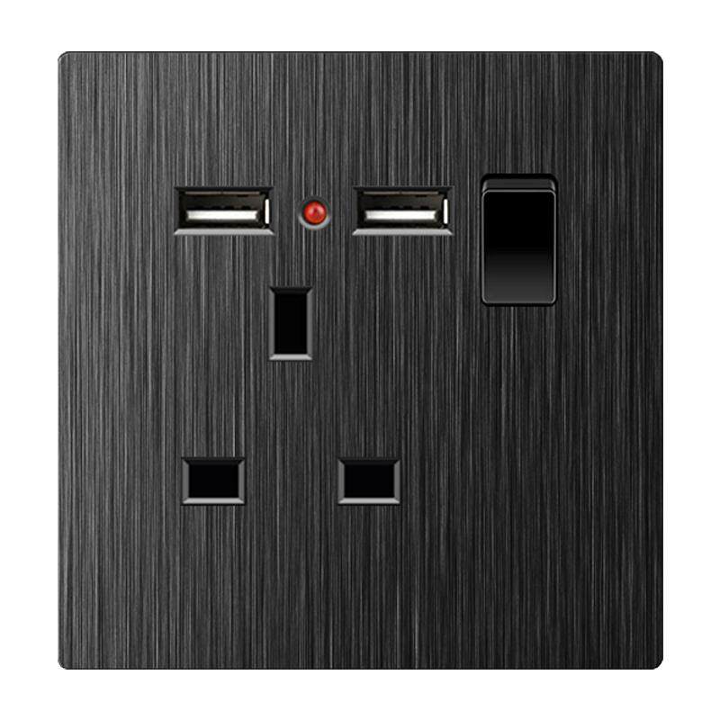 香港澳版电灯制双13A英式插座USB国际多功能墙壁开关拉丝黑色面板
