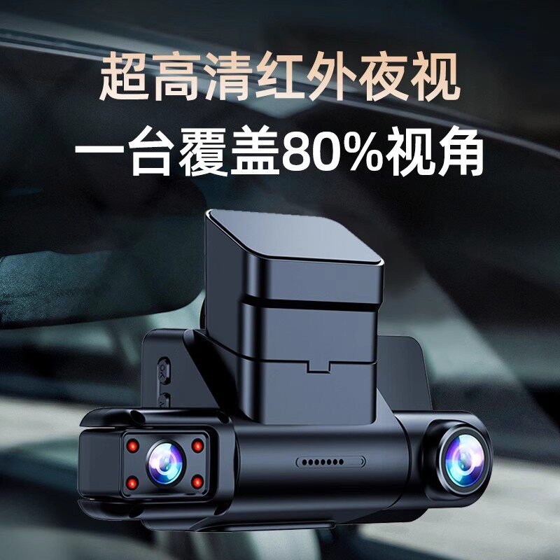 行车记录仪2025新款超高清前后三摄车内外双录停车监控免安装走线