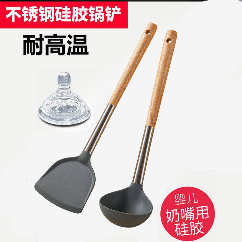 铲勺套装家用厨具不锈钢厨房用用具硅胶铲不沾P锅专用食品级耐高