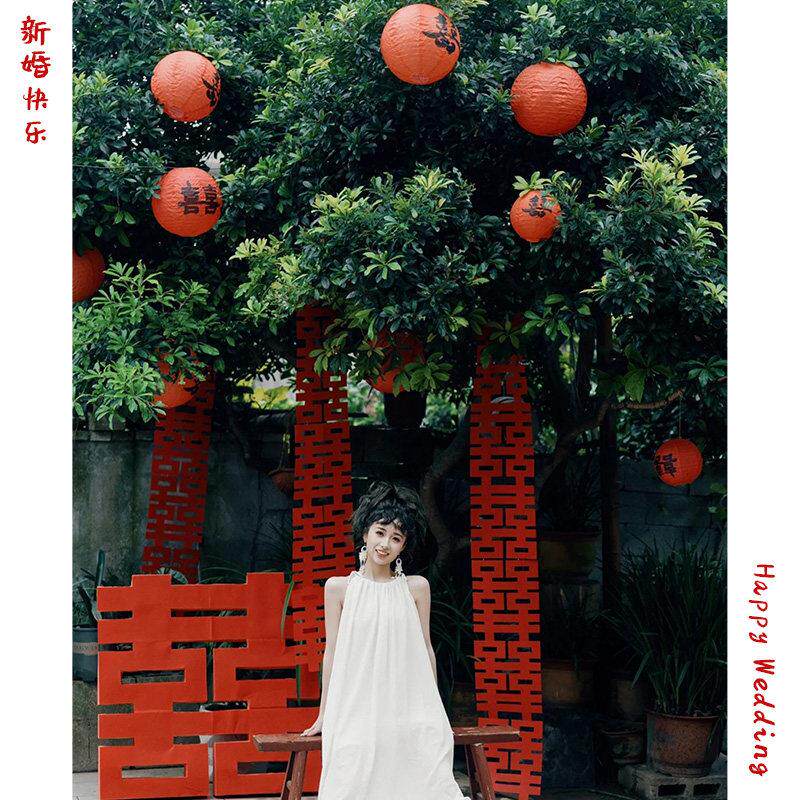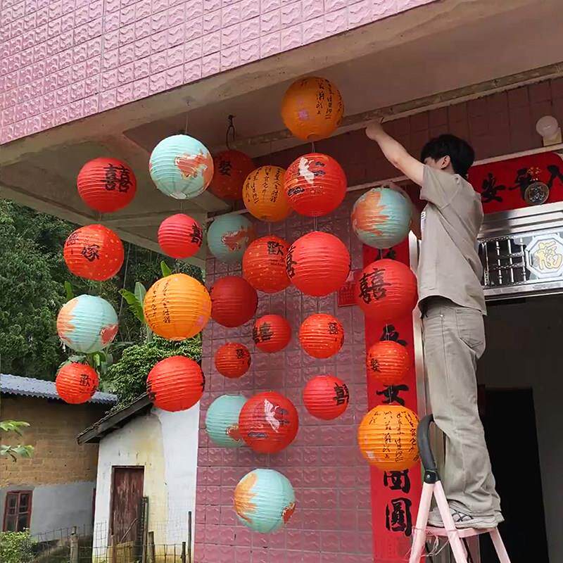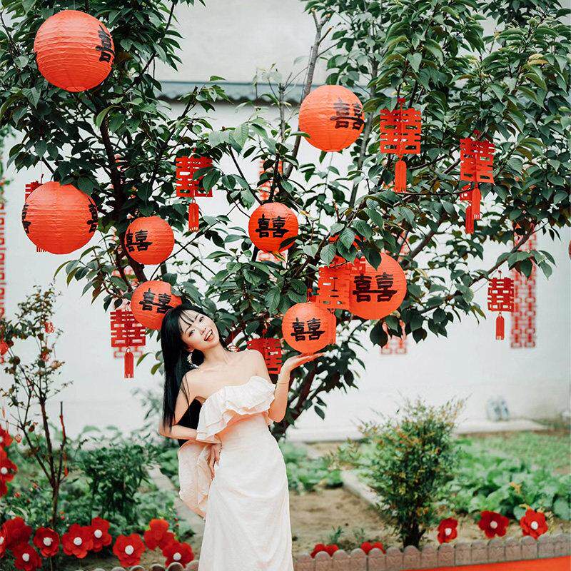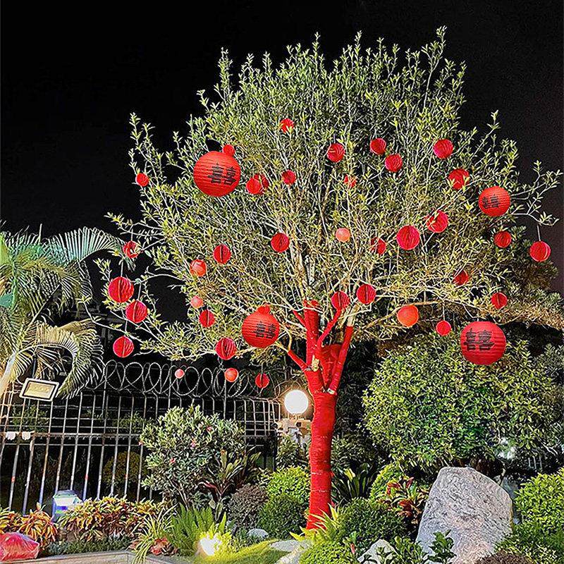树上喜字灯笼庭院挂饰大门口农村院子结婚装饰婚礼婚房布置男女方