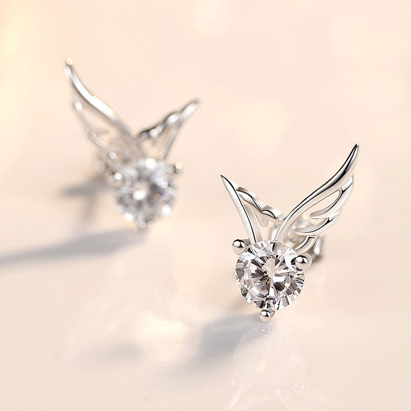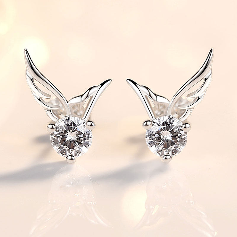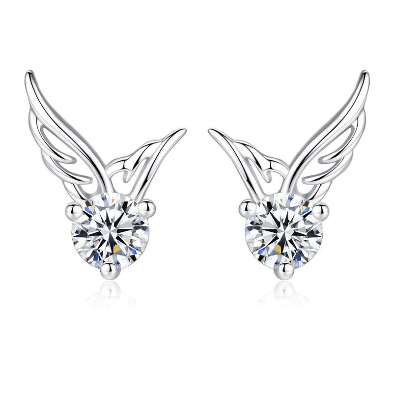 925纯银翅膀耳钉女防过敏简约百搭2019新款潮个性学生耳环耳饰