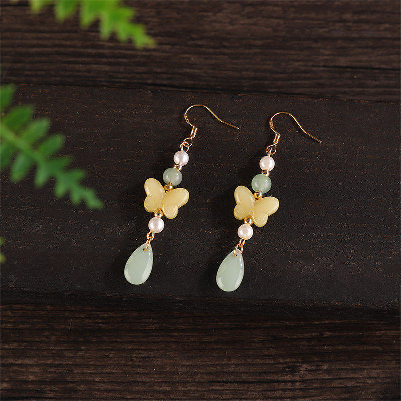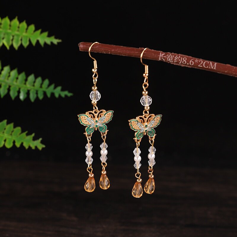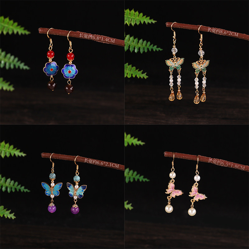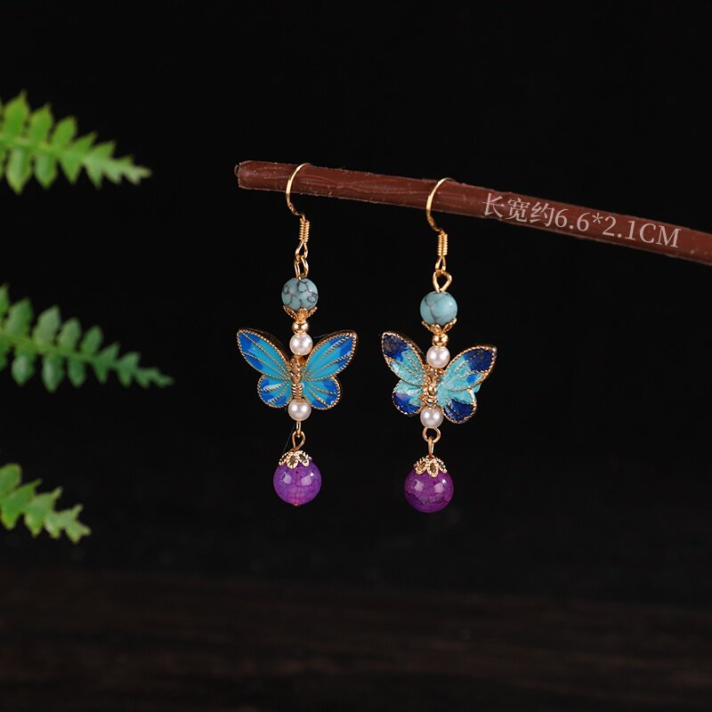 国风紫色蝴蝶耳钩新中式超仙古风耳饰复古百搭汉服旗袍耳饰配饰女