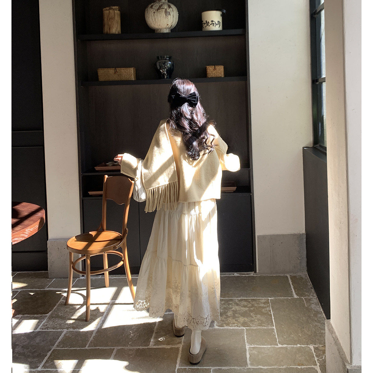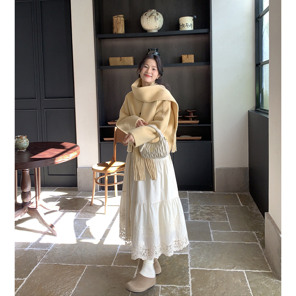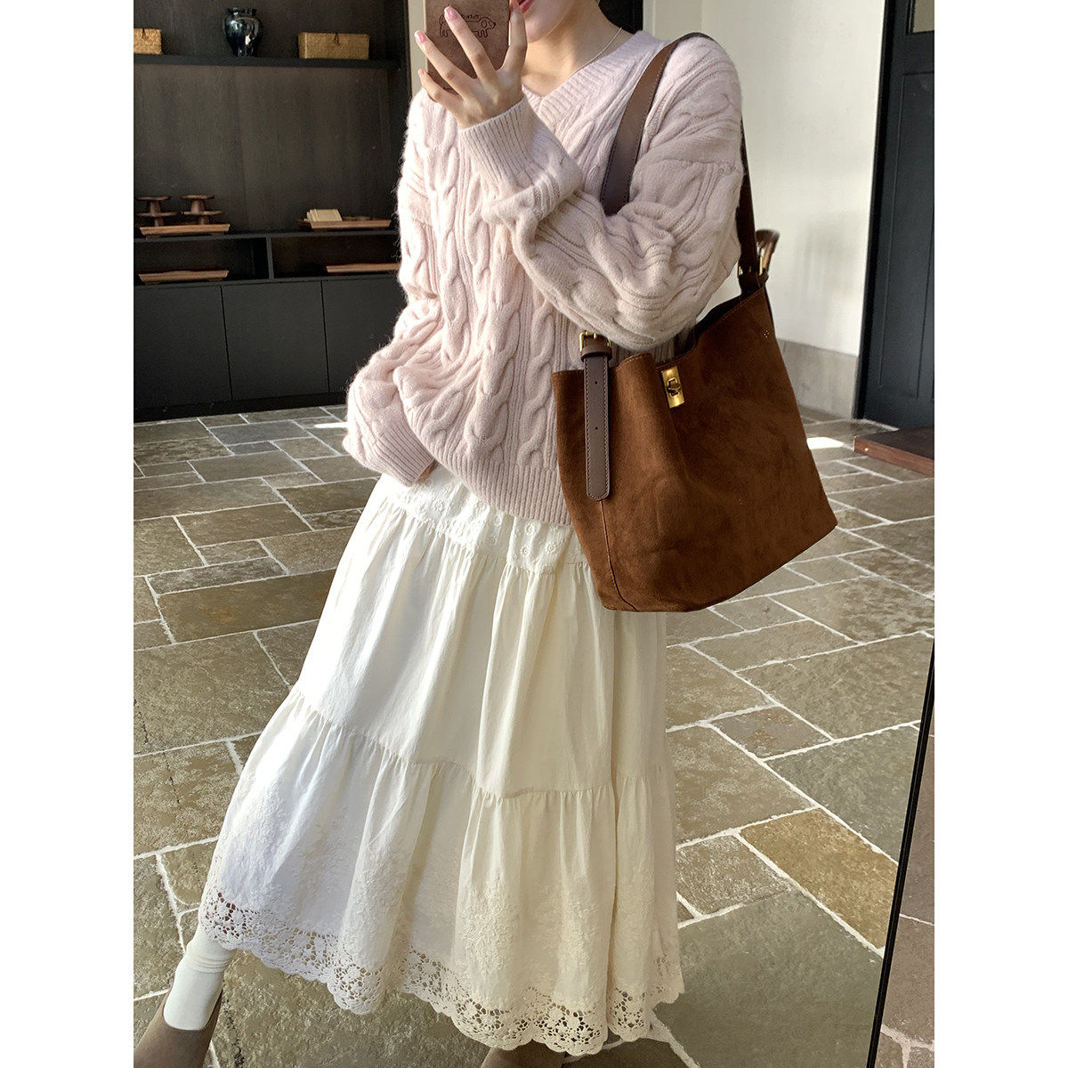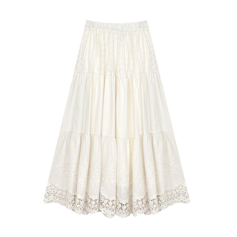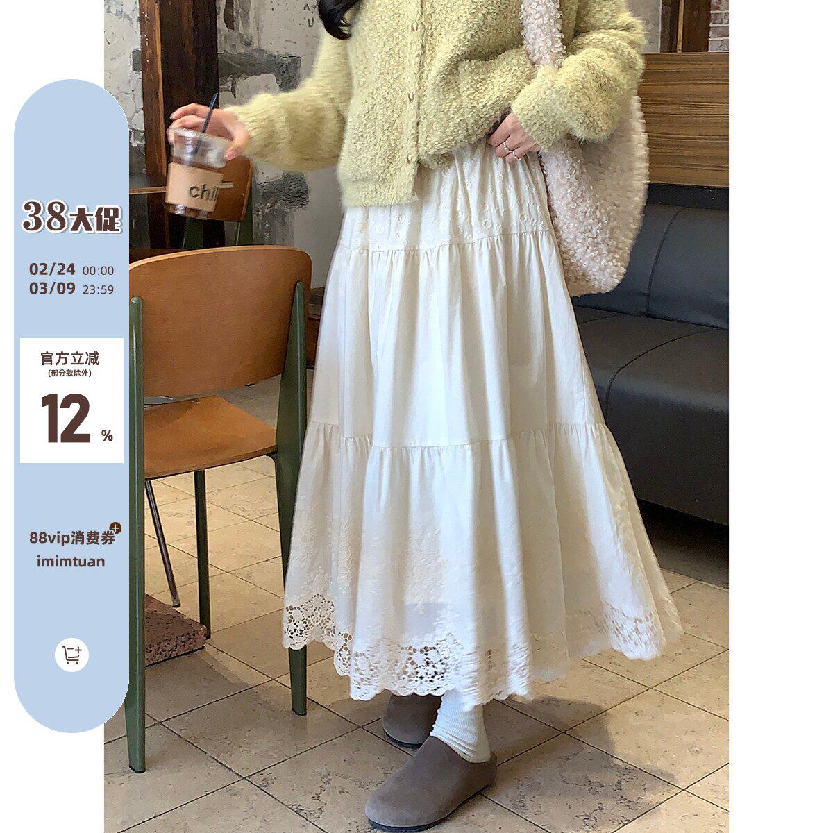 陆小团团法式刺绣提花高腰半身裙春季新款气质宽松百搭梨形裙子女