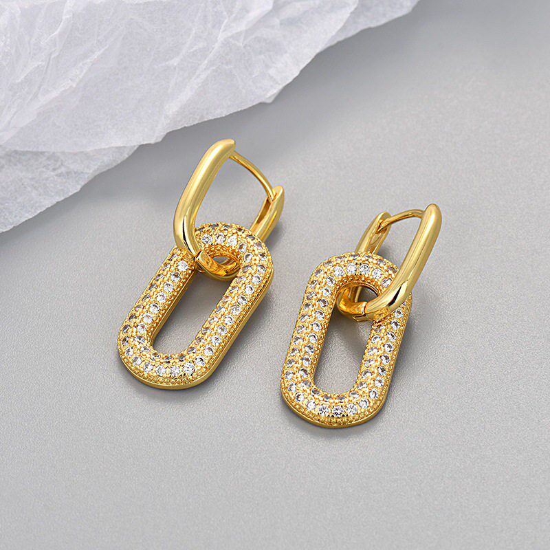 奥特莱斯 方形耳环银针耳饰欧美简约气质高级感轻奢18K镀金女配饰