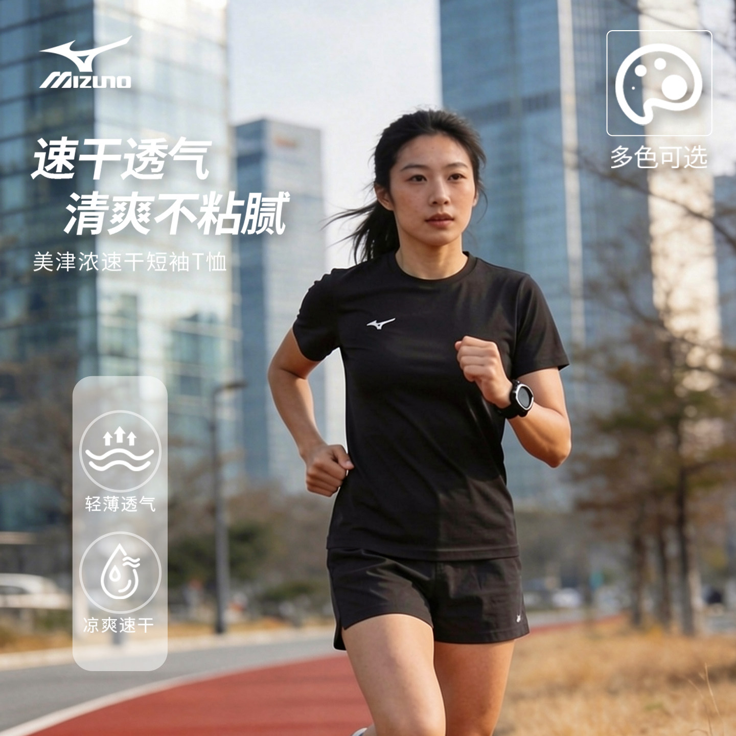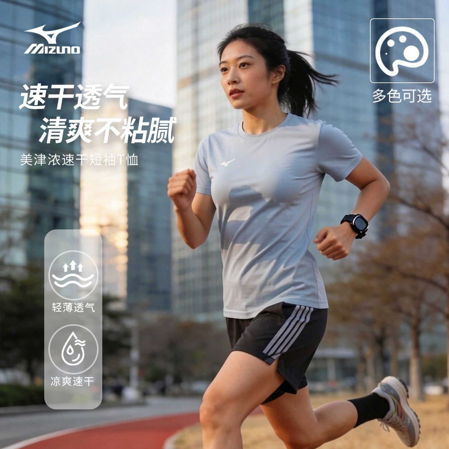 美津浓凉感速干衣跑步短袖运动T恤2026新款男女健身上衣羽毛球服