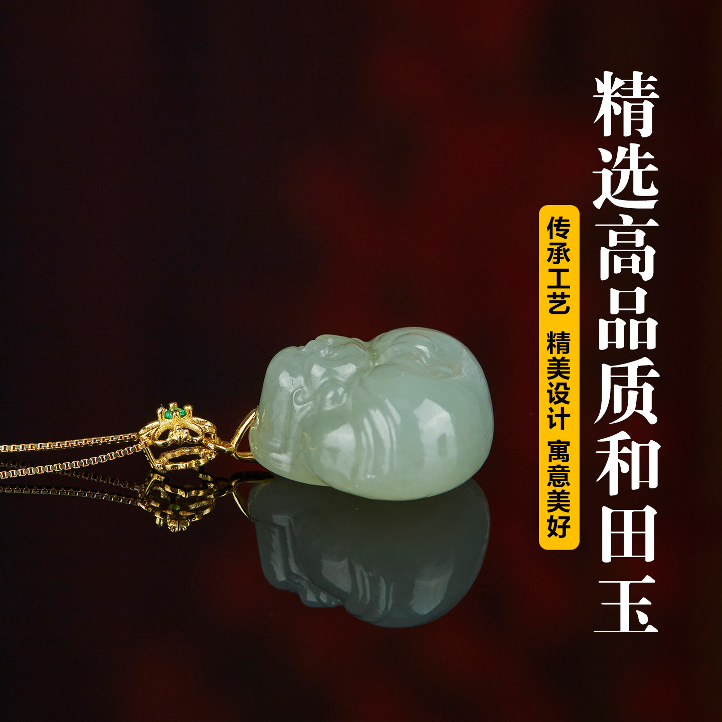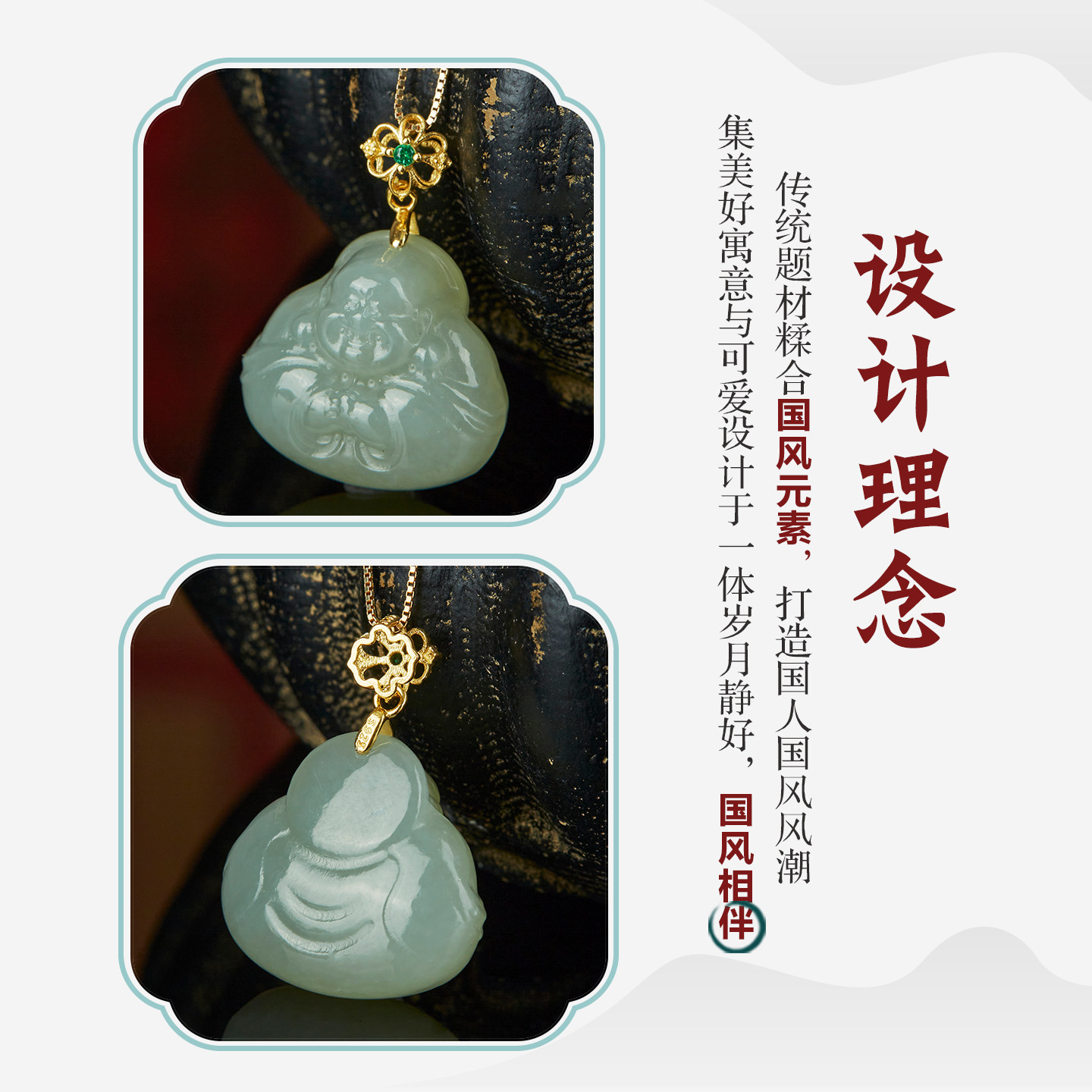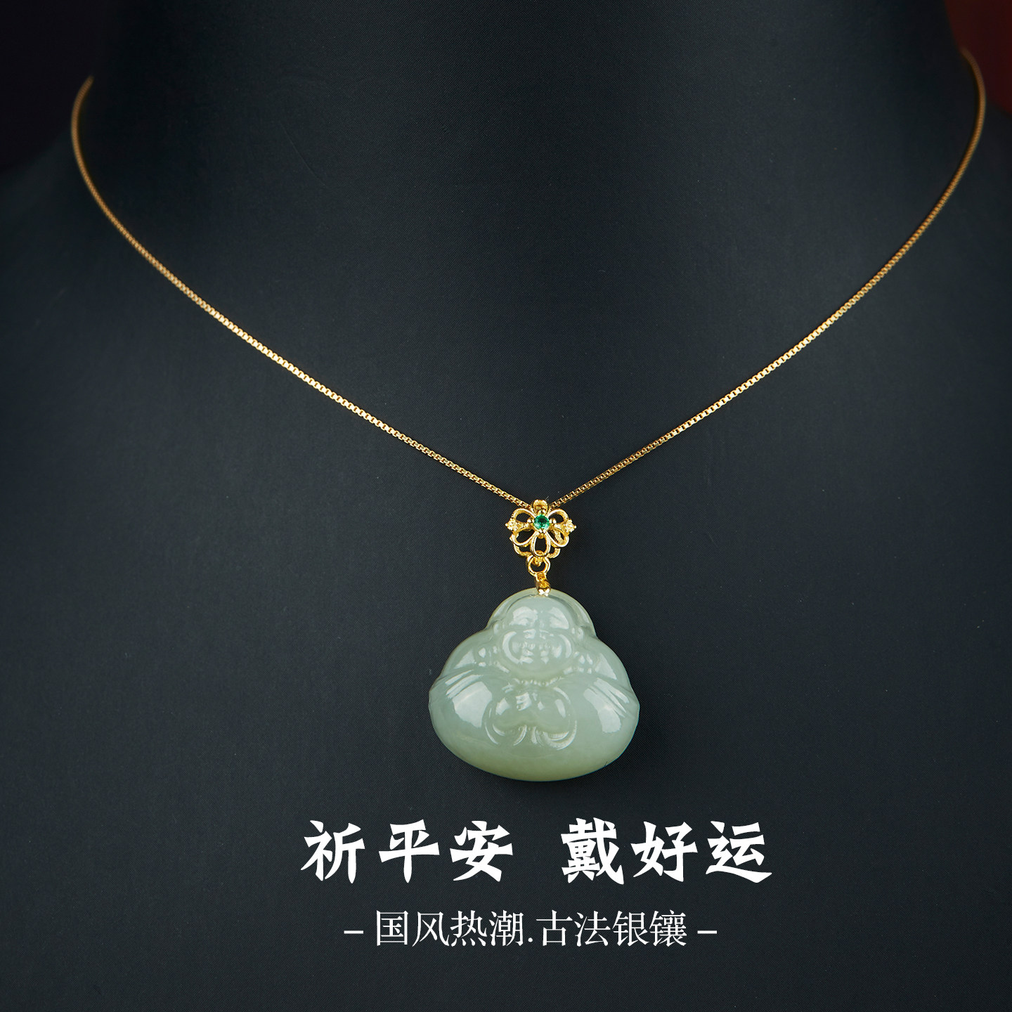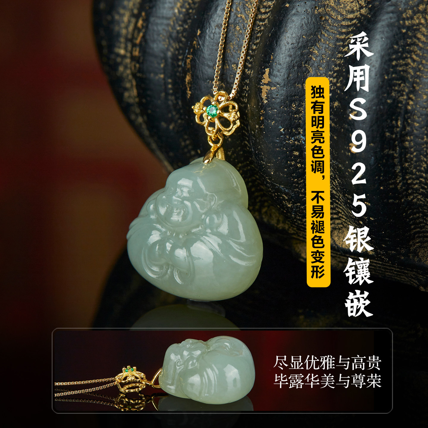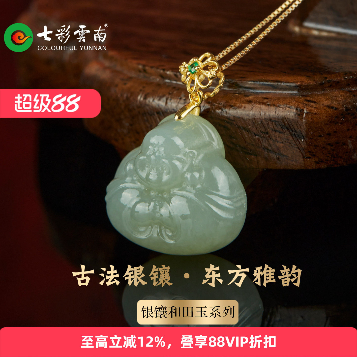 七彩云南天然和田玉镶嵌佛公吊坠银镶东方雅韵颈饰项链古风首饰
