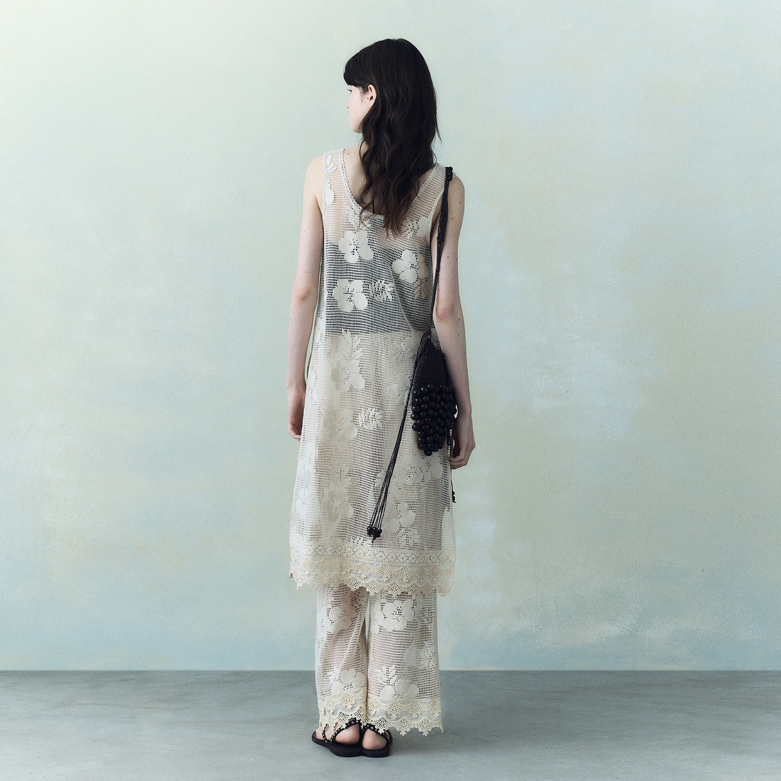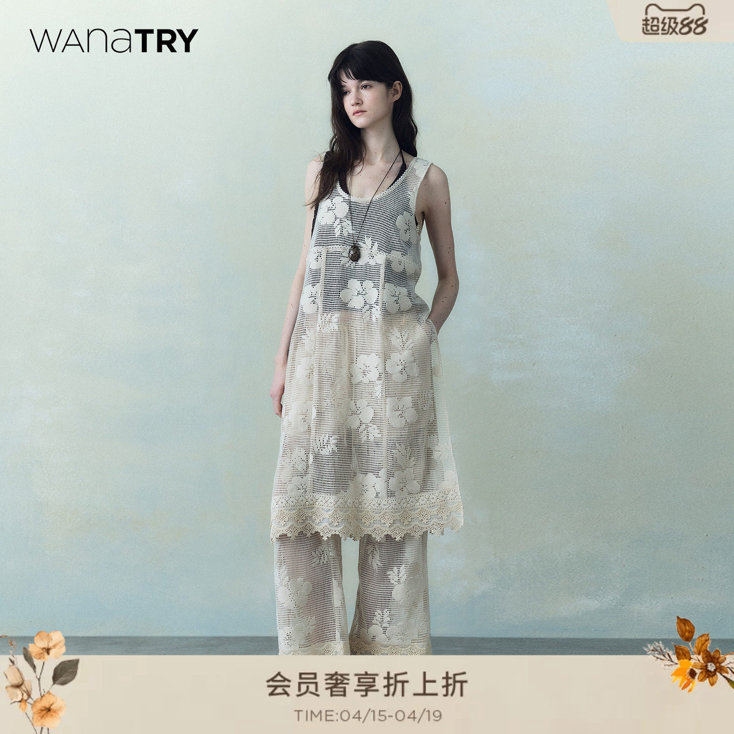 wana try编织感面料装饰下摆无袖连衣裙春季新款温柔复古气质女裙