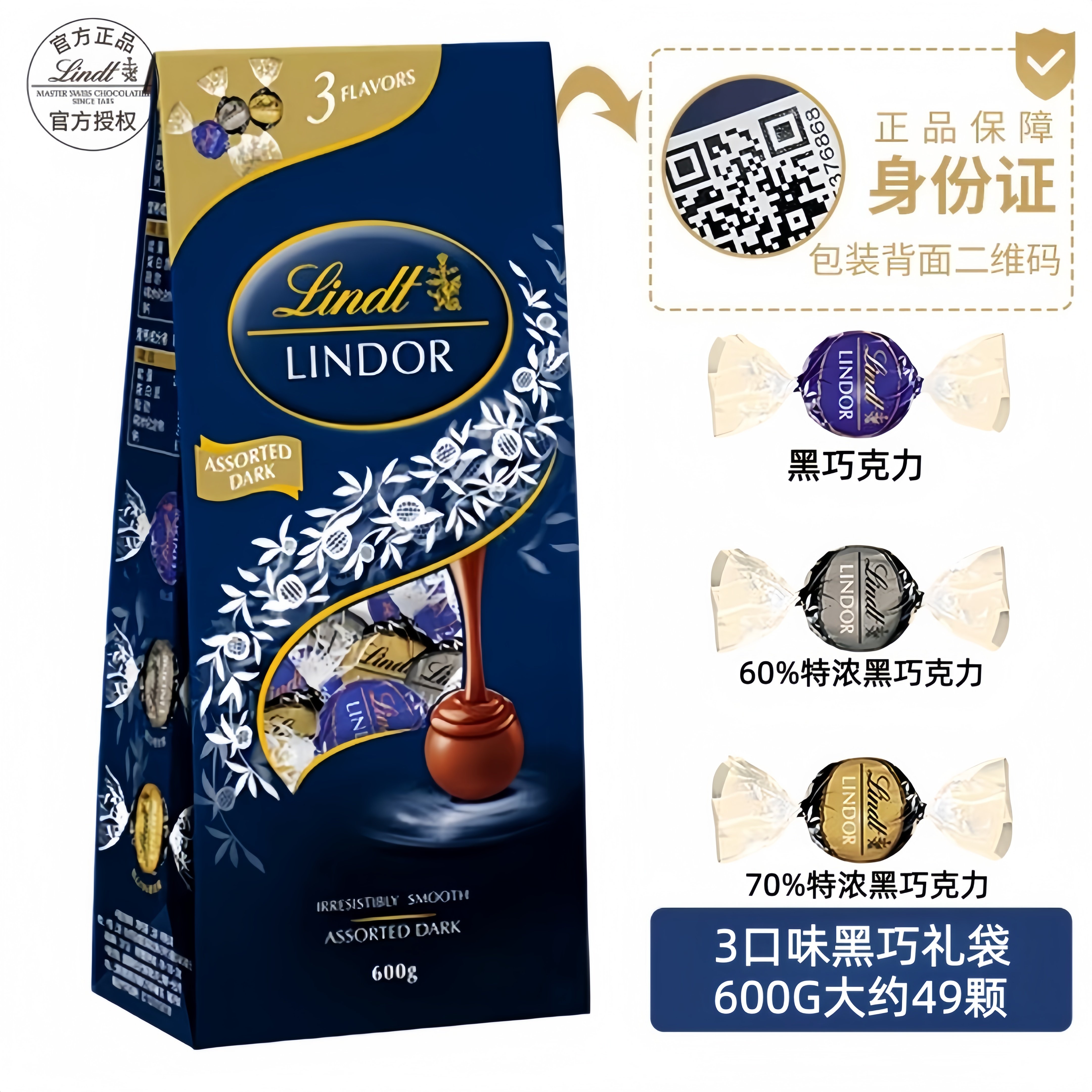 瑞士进口瑞士莲Lindt Lindor混合巧克力软心球569G冰山特浓黑婚庆