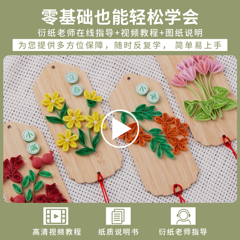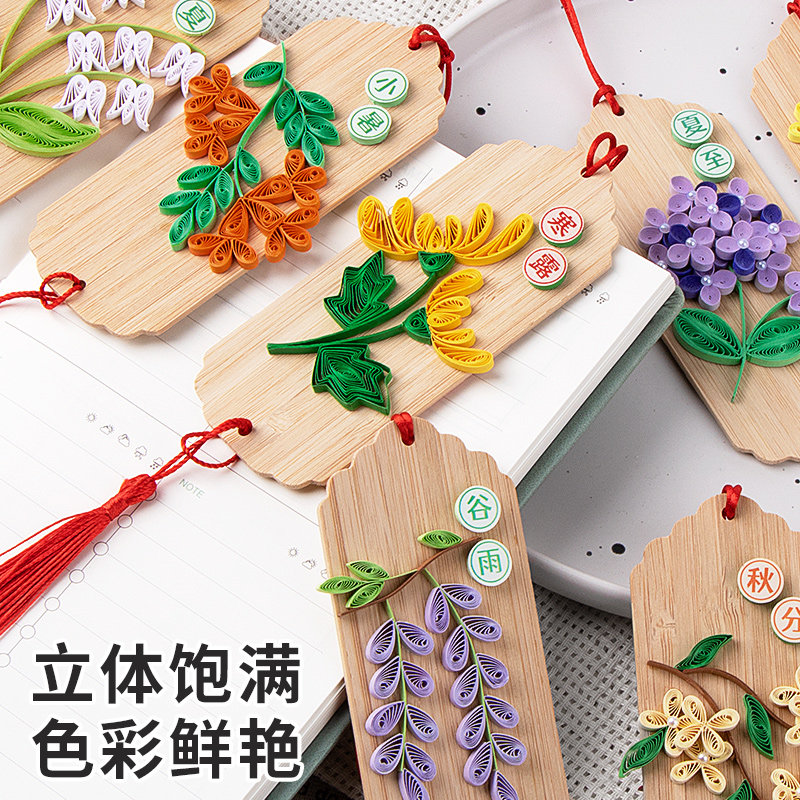 中国传统文化24节气竹书签衍纸材料包文创卷纸材工具套装古风礼物