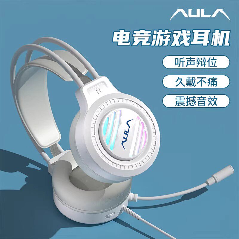 AULA狼蛛S606有线发光头戴式耳机耳麦台式电脑笔记本办公休闲通用