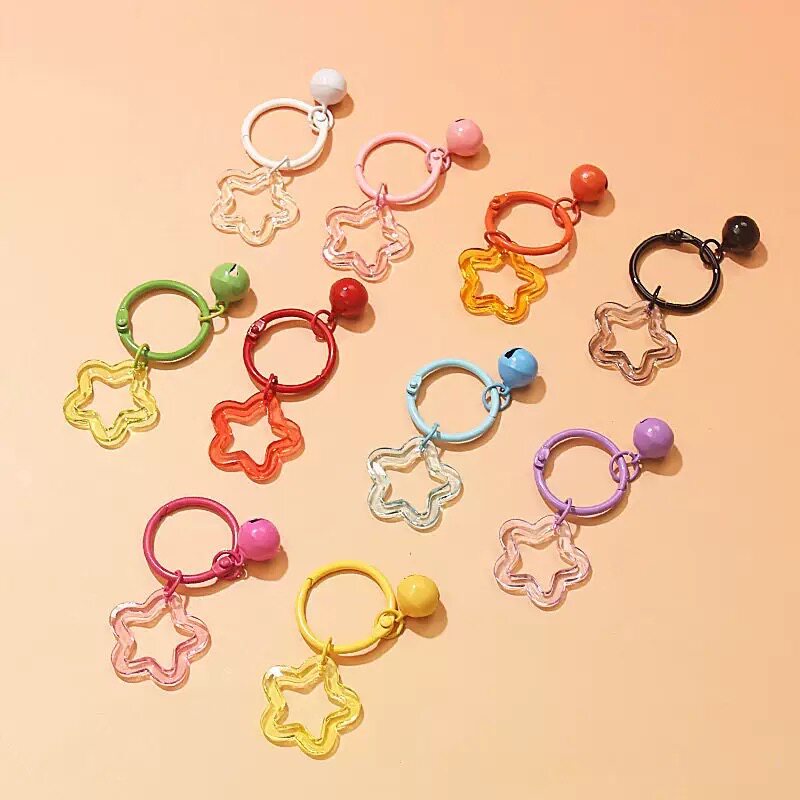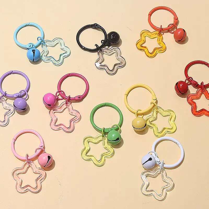 透明亚克力彩色星星钥匙扣圈环可爱铃铛diy书包锁扣挂饰配饰配件
