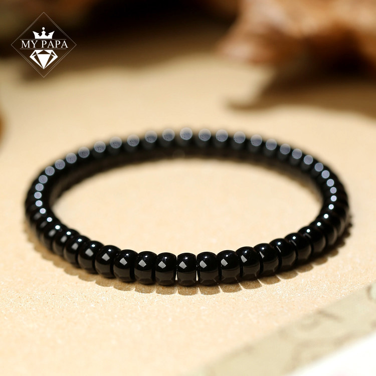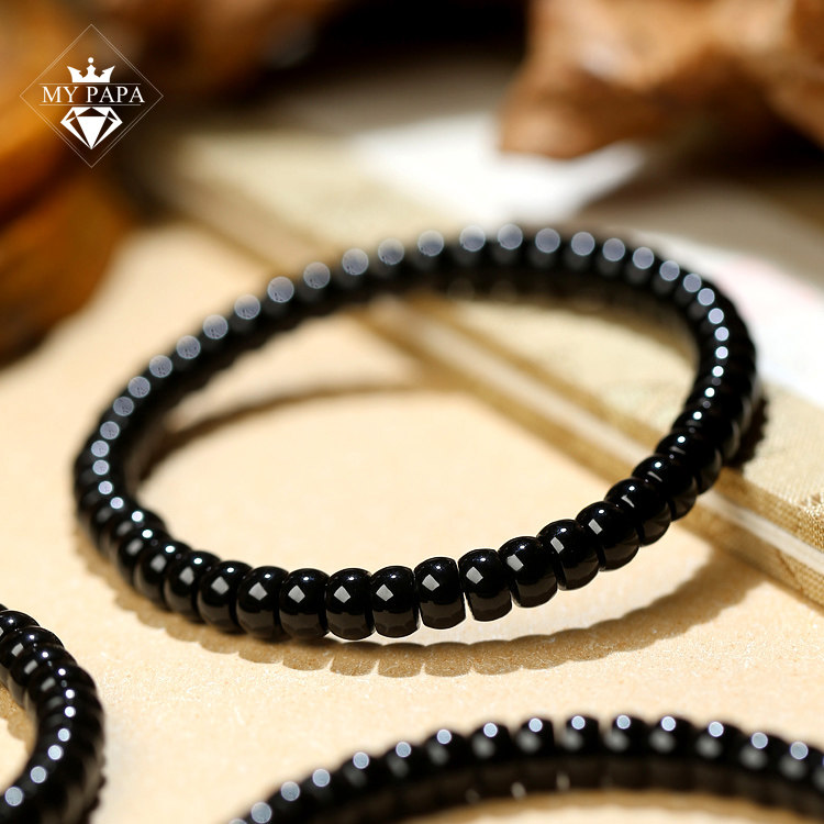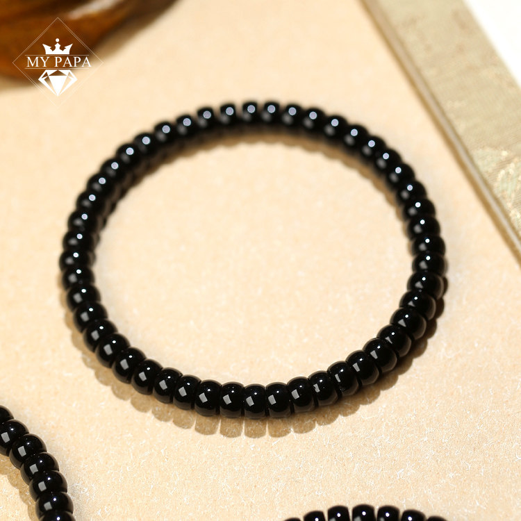 黑美人 MYPAPA水晶彩宝直切算盘珠黑玛瑙单圈手链男女手串好礼