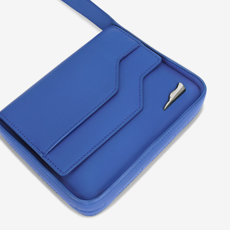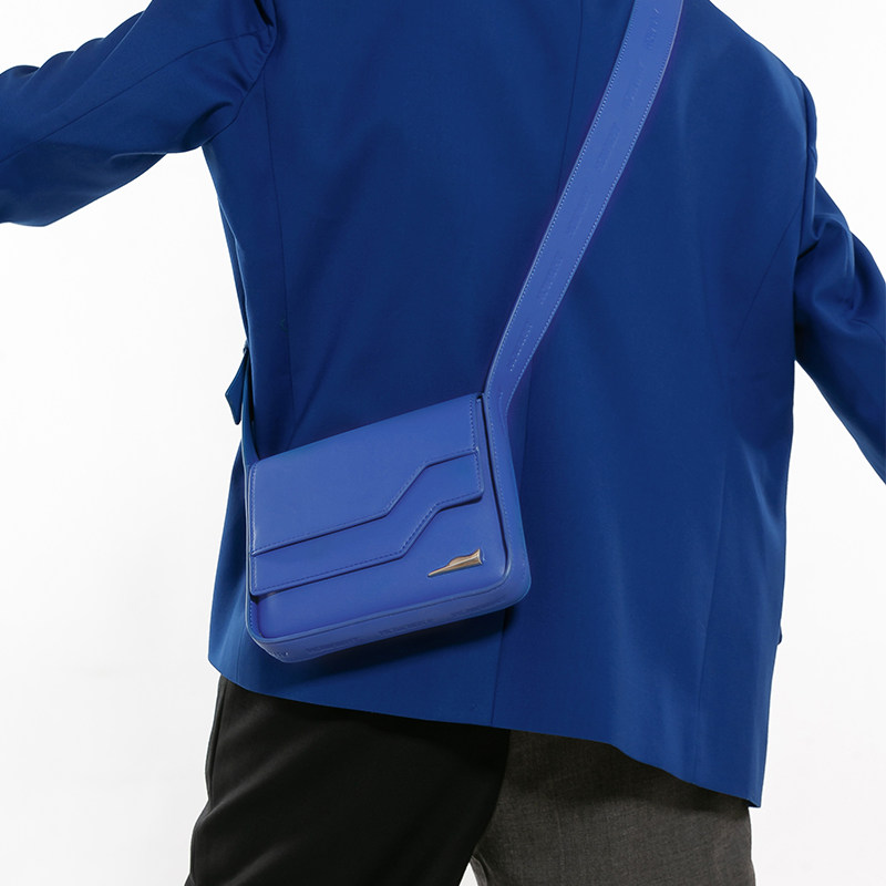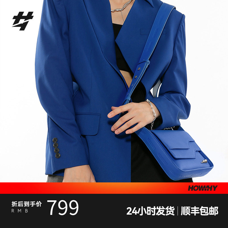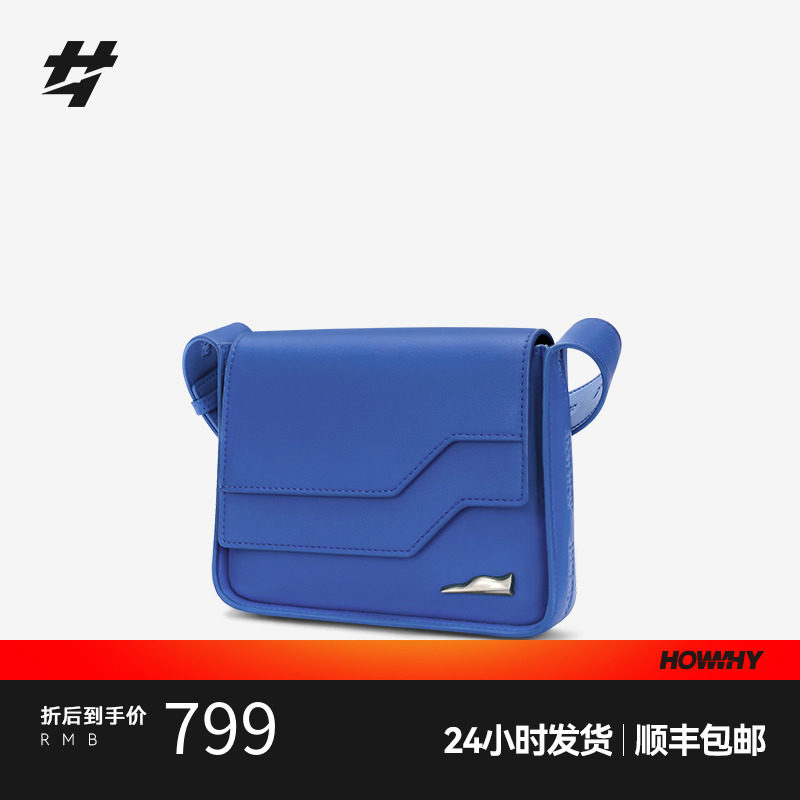 HOWWHY中性芯片包2023新款拼接设计感蓝色男款单肩斜挎包包女秋冬