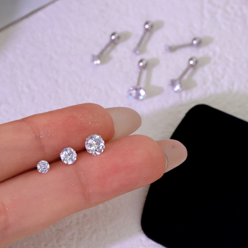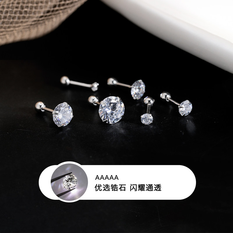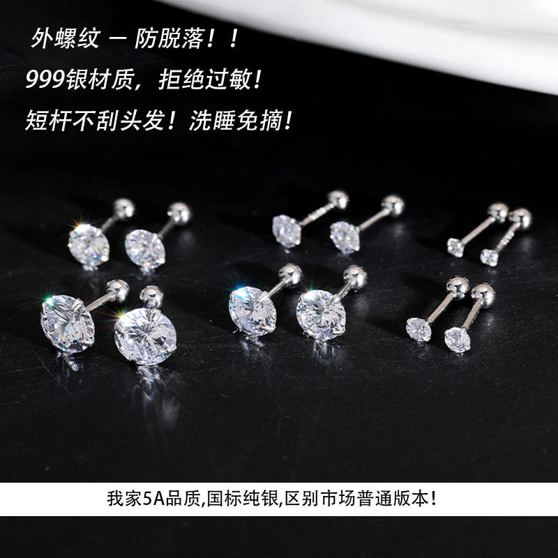 Z小姐 999银爆闪锆石耳钉女2025新款爆款养耳洞防丢螺旋拧扣耳环