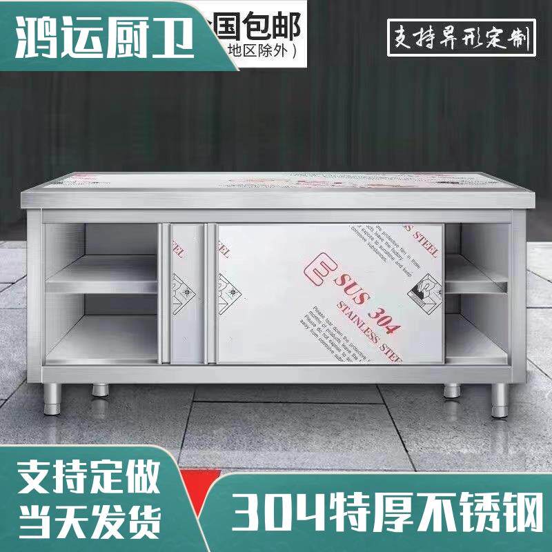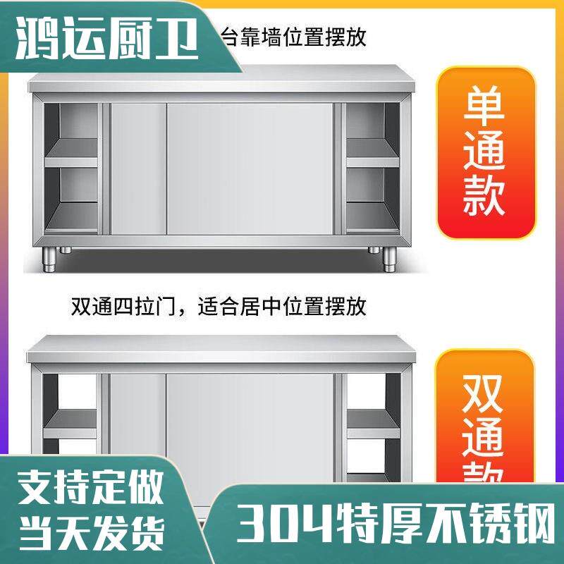 厚7W30IFE4不锈钢工作切台桌子厨房加作操台面菜商用拉门置储物柜