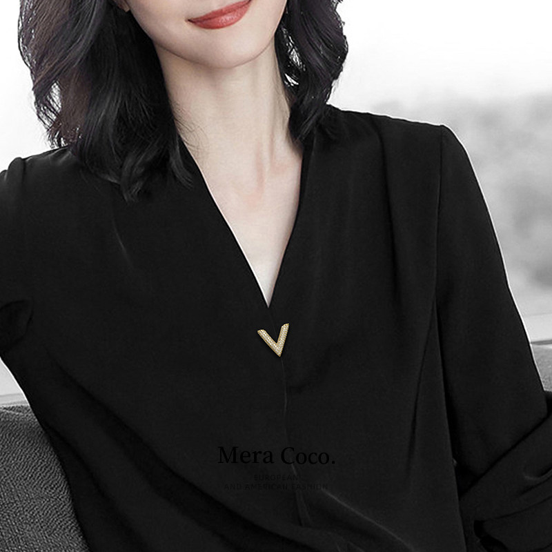 MeraCoco胸口V形防走光神器精致母贝胸针扣男士领针西装别针配饰