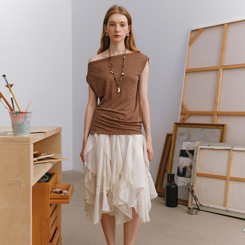 wana try荷叶边蕾丝拼接半裙新款轻盈不易皱法式半身裙流浪风裙子