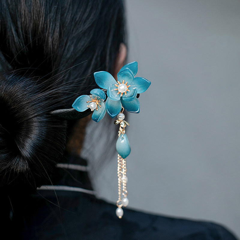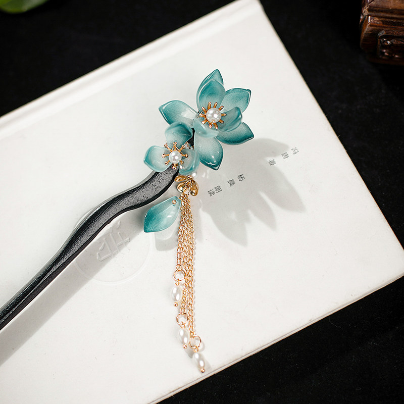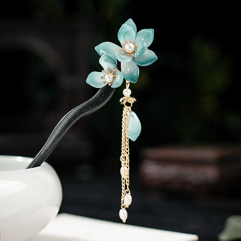 原创木簪盘发流苏花朵簪子古风木质复古发簪旗袍配饰女汉服头饰