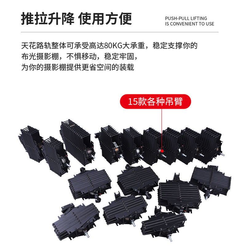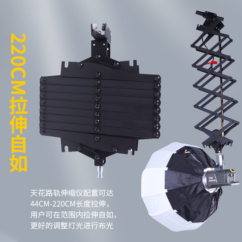 天花路轨恒力铰链伸缩吊臂架摄影棚led灯常亮灯闪光灯顶装轨道演播室顶灯吊架轨道滑轨直播间灯光顶装轨道