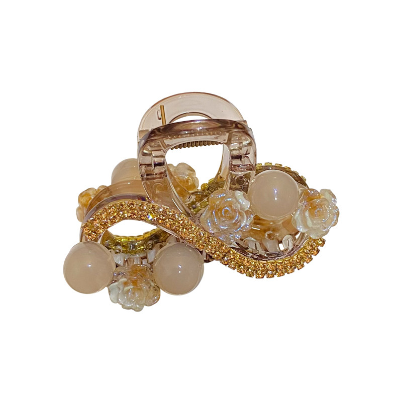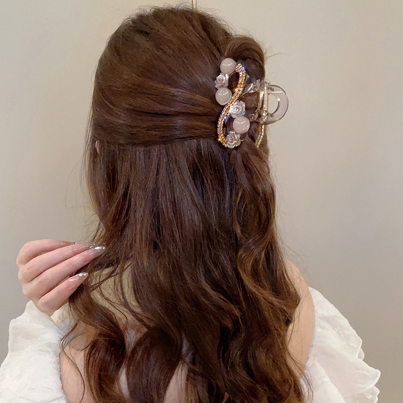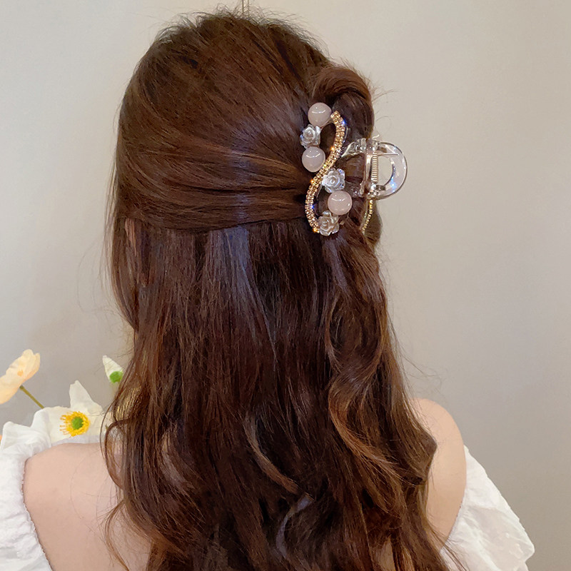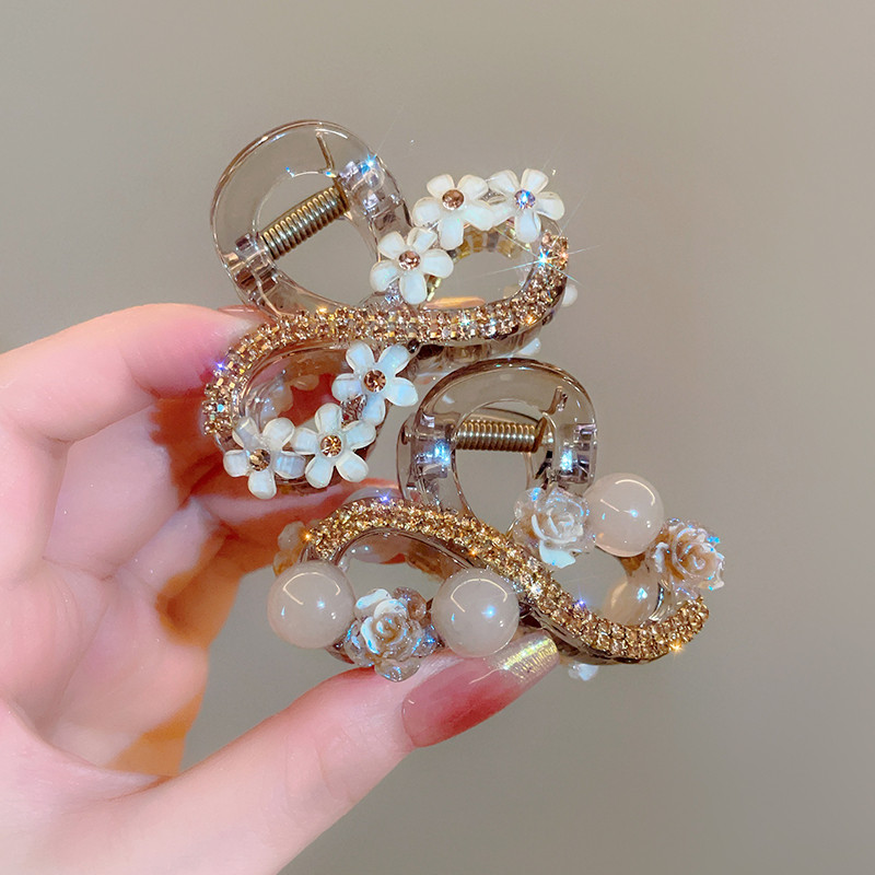 韩版水钻花朵中号抓夹女后脑勺半扎发发夹发量少鲨鱼夹气质发卡子