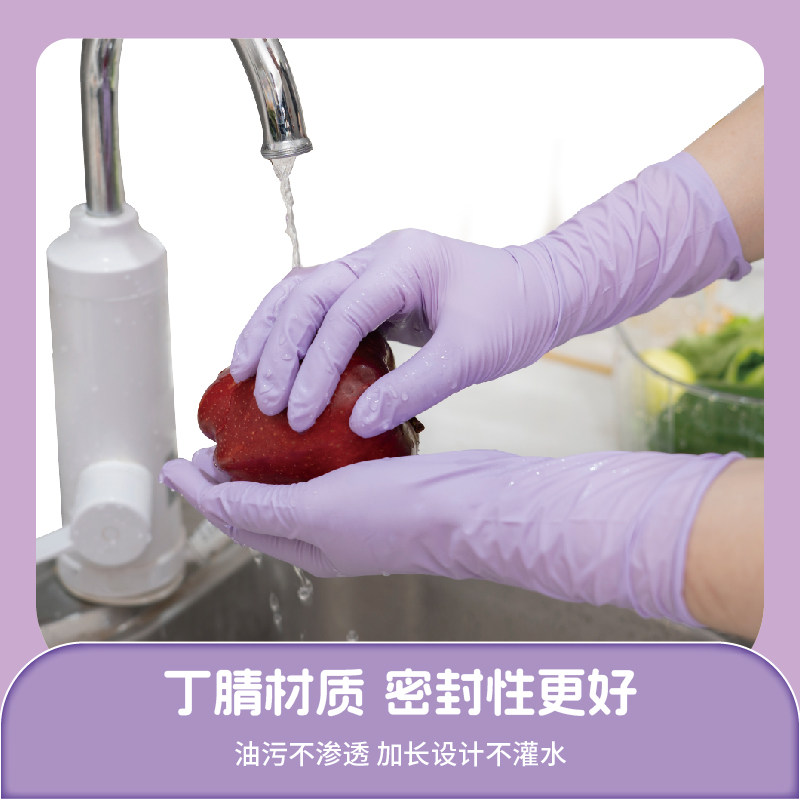 Titanfine/添赞一次性丁腈手套食品级家务厨房清洁S码乌梅紫
