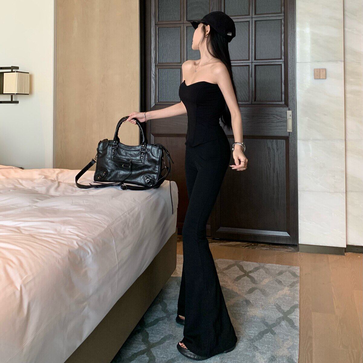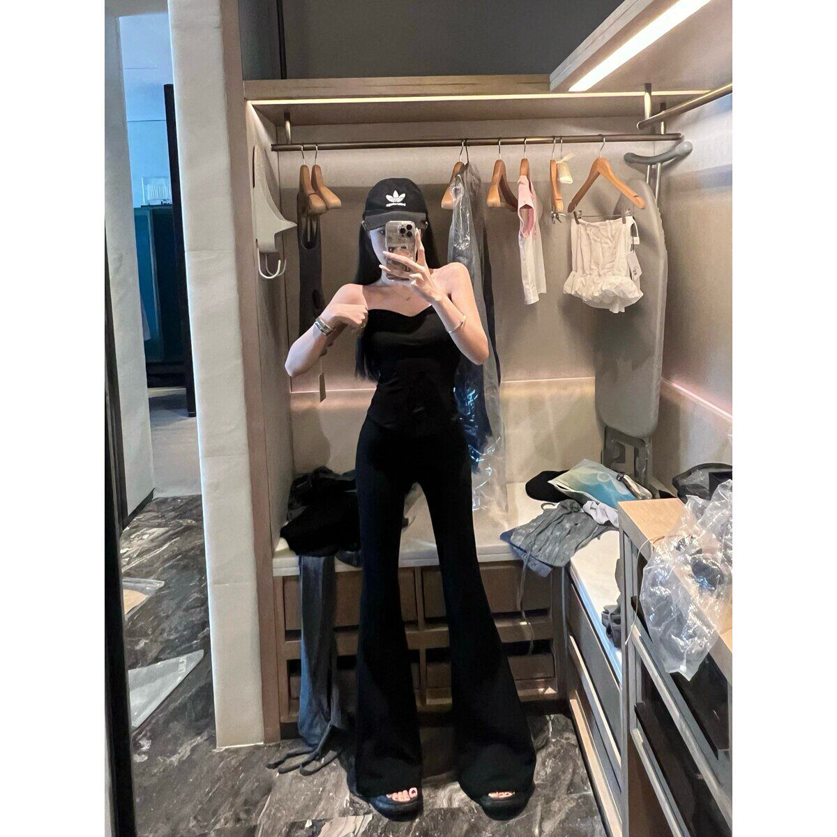 黑色西装微喇叭裤女夏2025新款高级感显瘦垂感175高个子加长马蹄