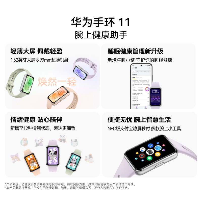 【国家补贴】华为手环11 标准版羽砂黑增强型聚合纤维表壳1.62英寸流畅大屏专业睡眠健康监测手环10升级