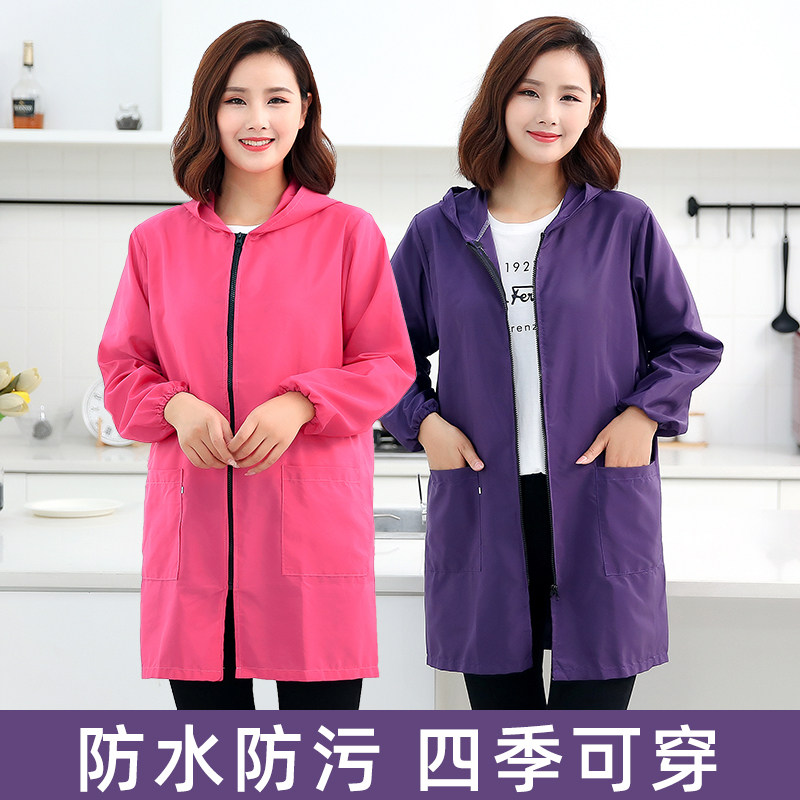 长袖防水防油罩衣大人厨房家用时尚做饭围裙女外套护衣工作服薄款
