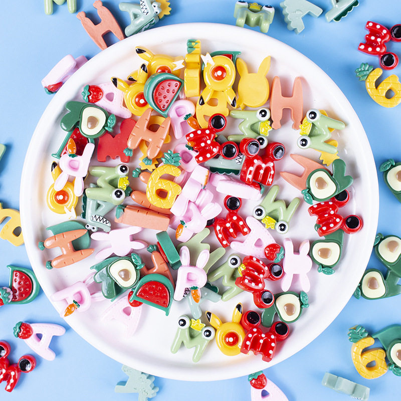 树脂配件新款卡通迷你字母水果 diy耳钉材料儿童发夹皮筋饰品贴片