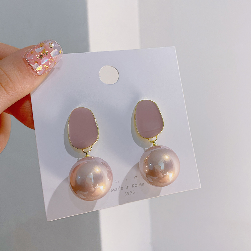 2023年新款潮少女心粉色大珍珠耳环气质名媛风韩版百搭清凉耳饰女