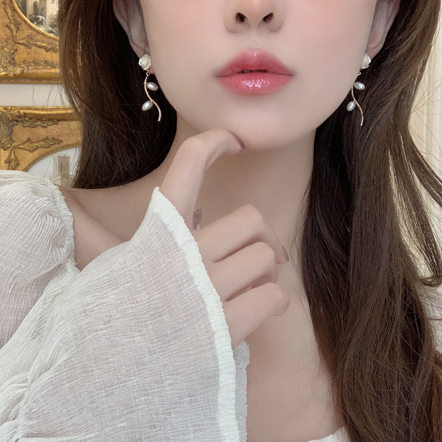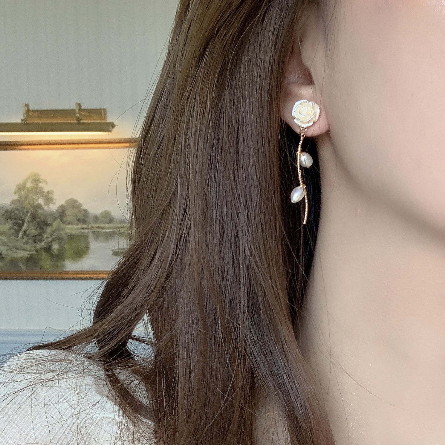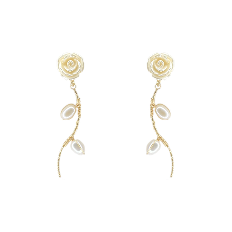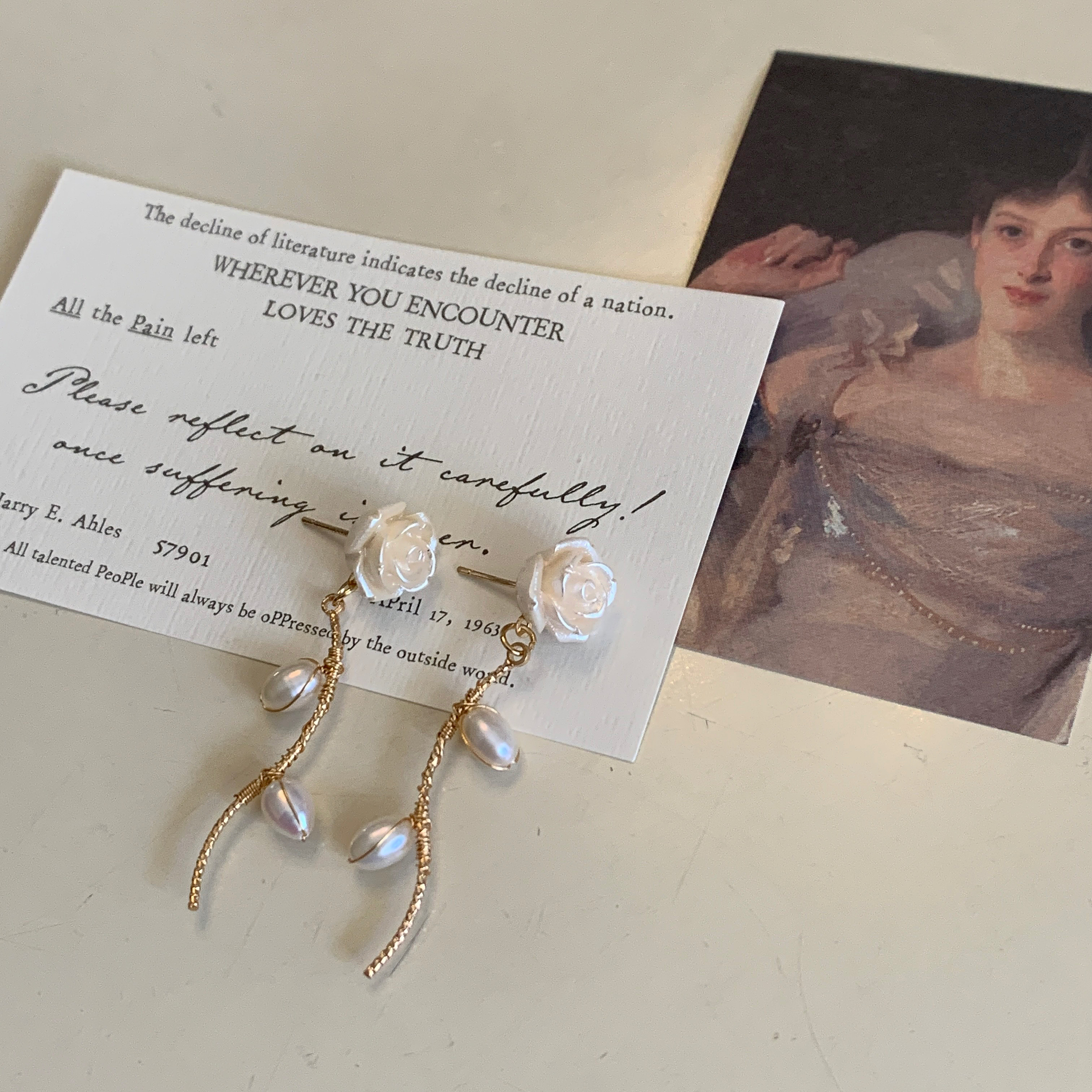 休眠火山◆舒伯特玫瑰 法式气质花朵珍珠耳钉小众设计高级感耳环