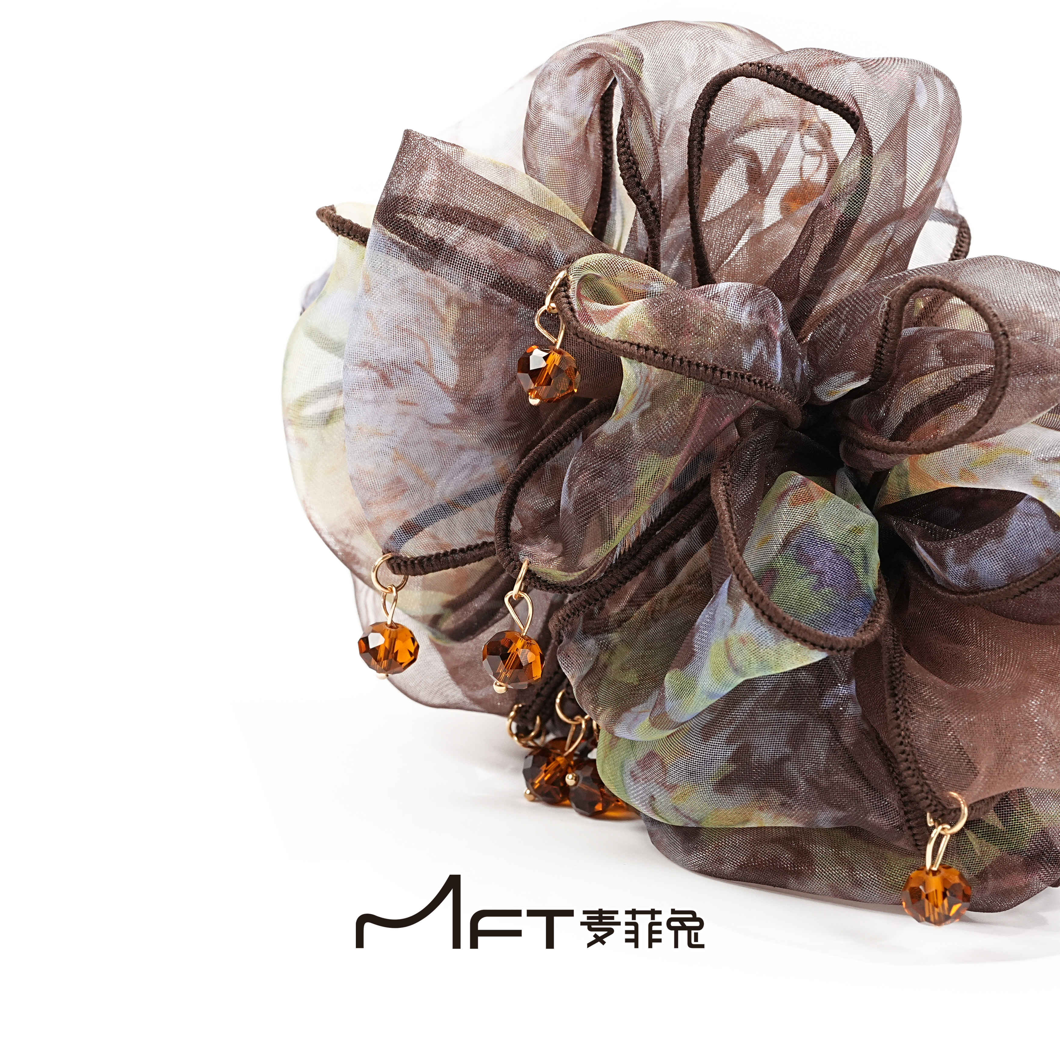 雾纱棕林发圈春季新款时尚浪漫蓬松大肠发圈气质百搭扎头发绳发饰