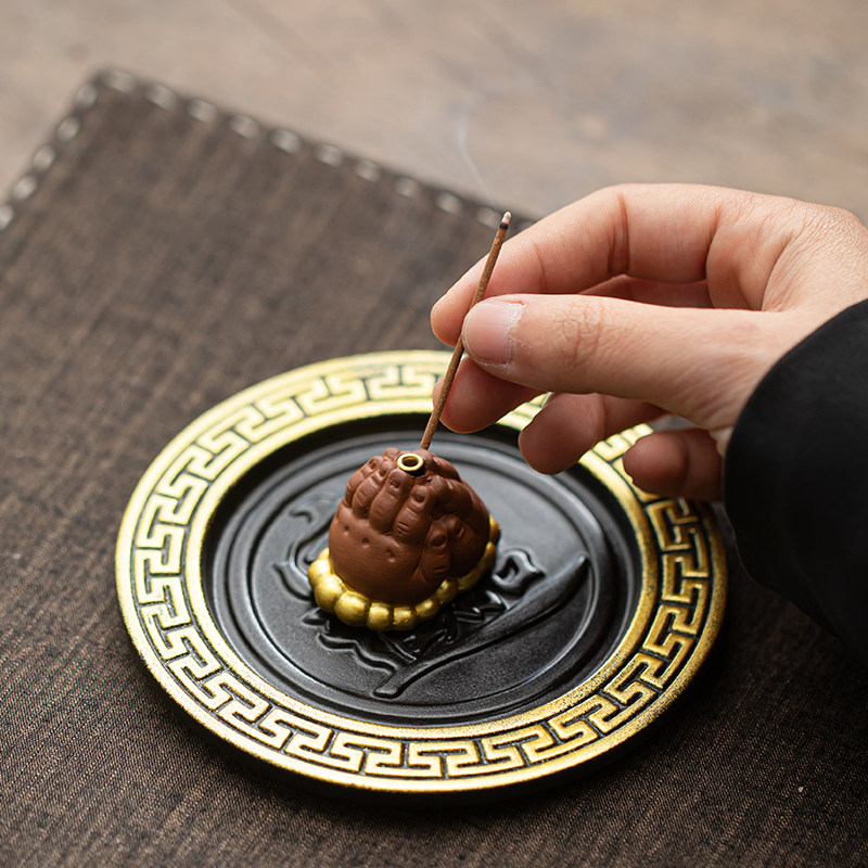 招财紫砂小动物线香炉家用室内香插香座禅意茶室桌面香薰炉小摆件