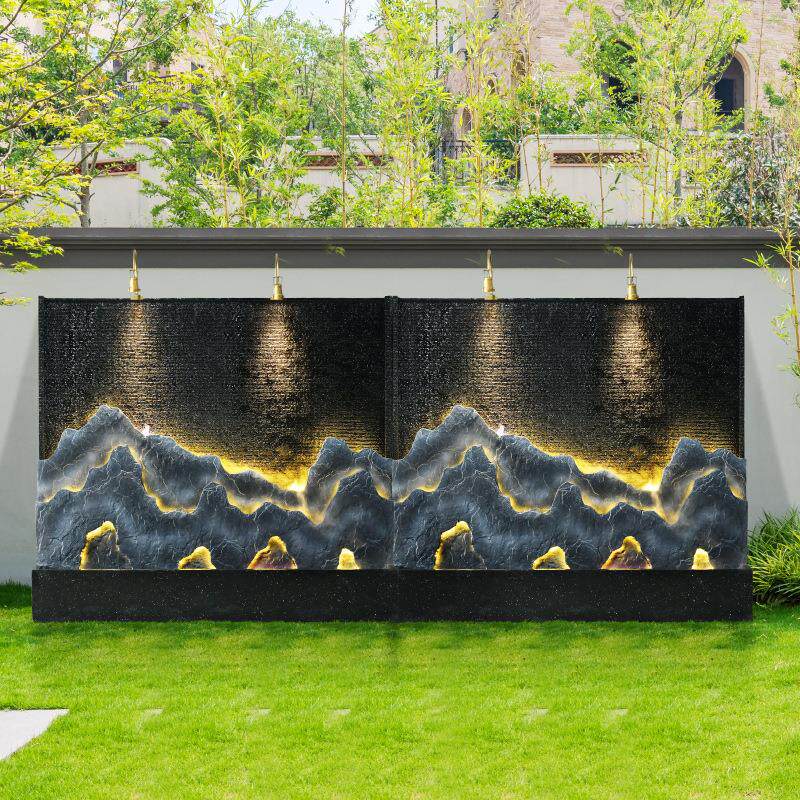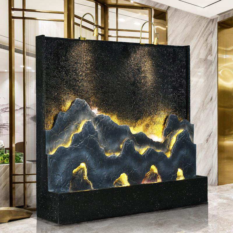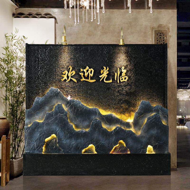 大型假山屏流水喷断泉水幕隔风庭院鱼池墙s301酒店办公室招财落地