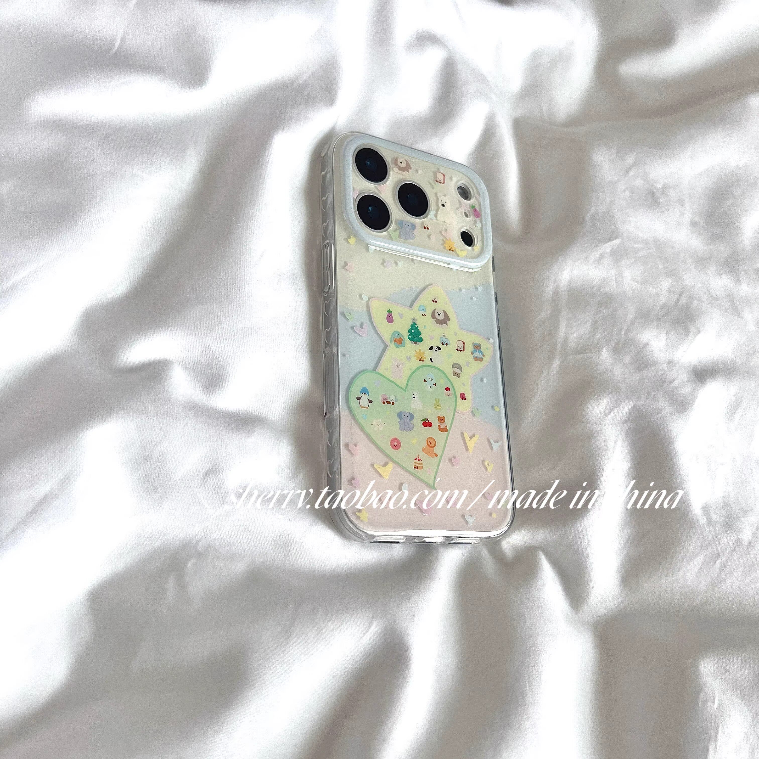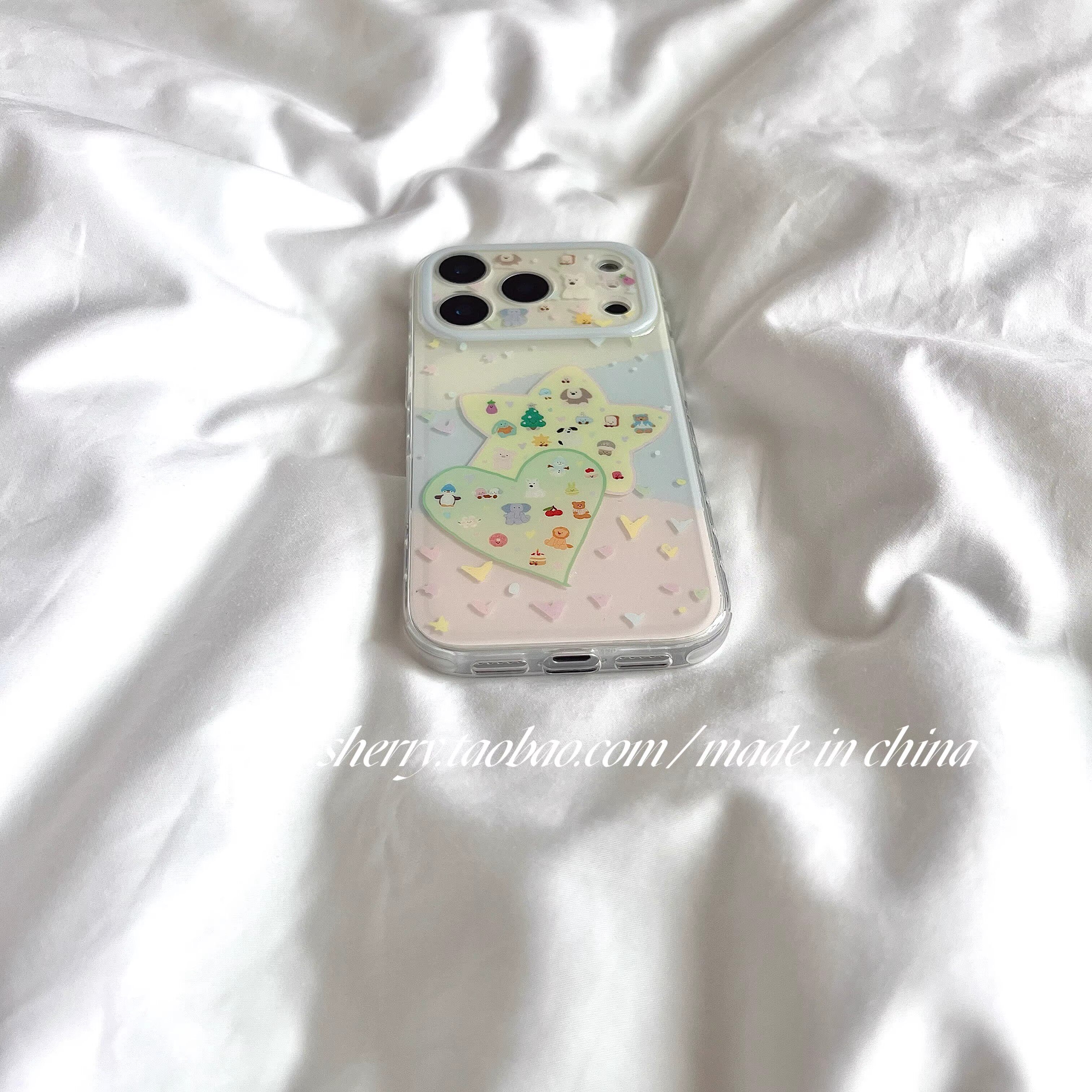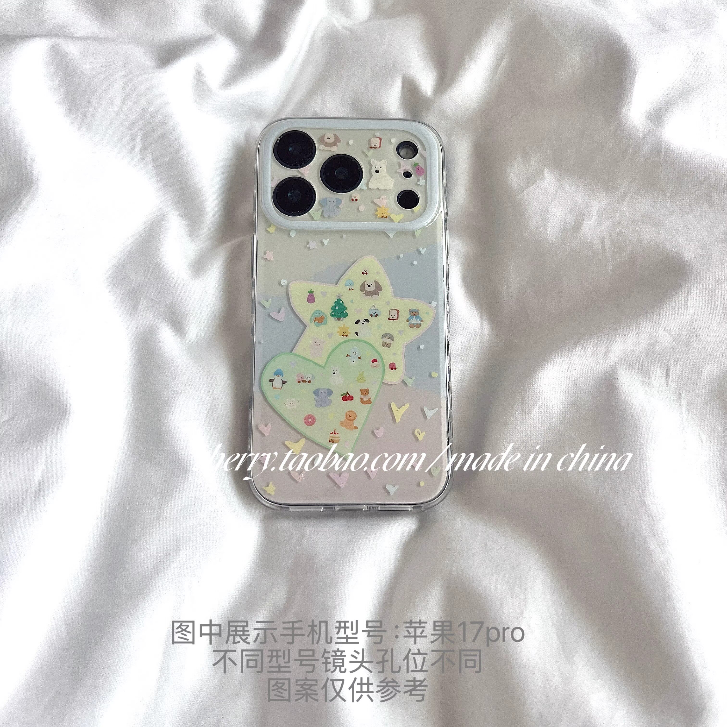 日本DEMIU风拼色星星爱心小动物适用于苹果17ProMax手机壳iPhone16Pro小众少女心15简约14小清新卡通可爱春