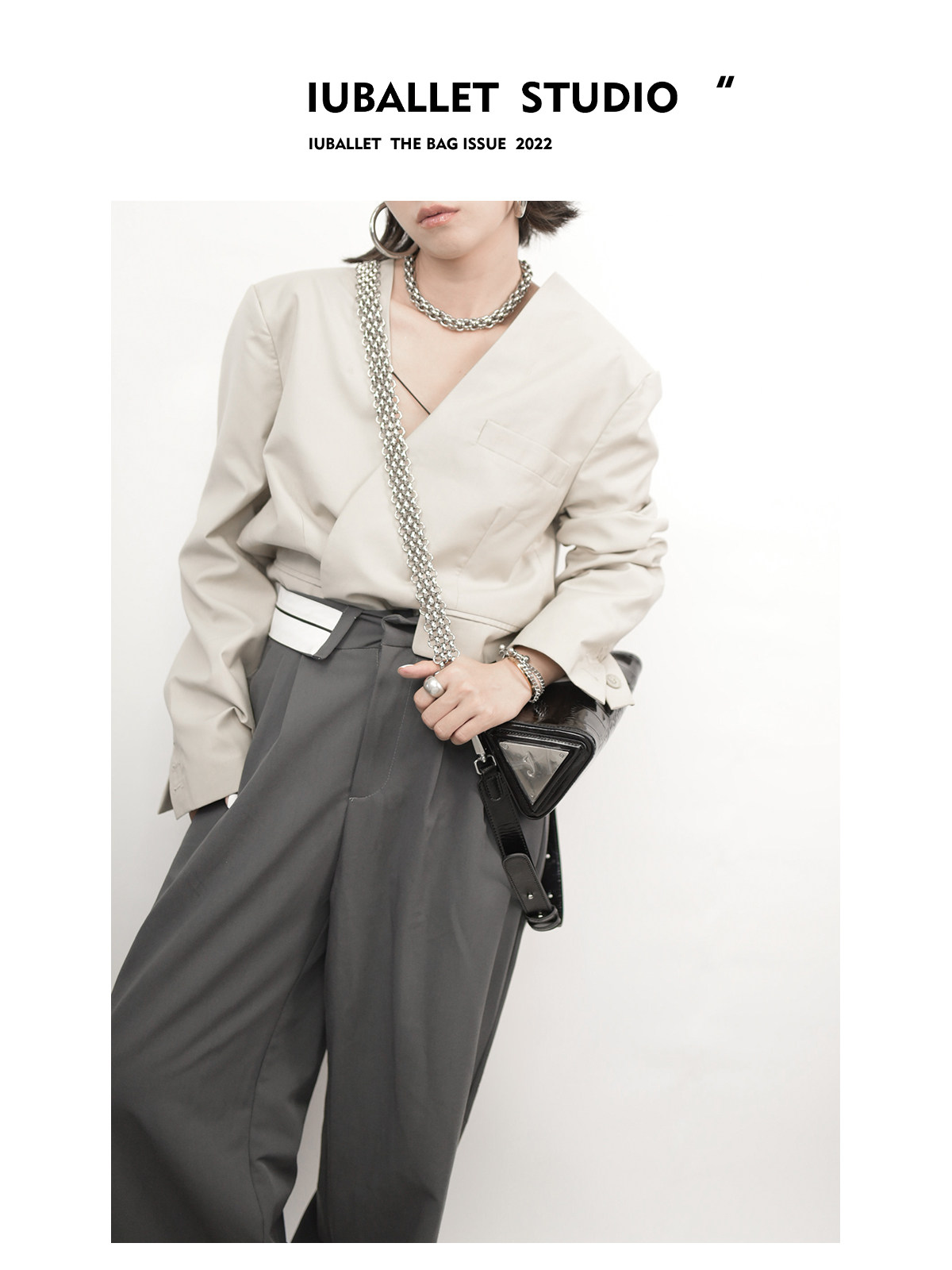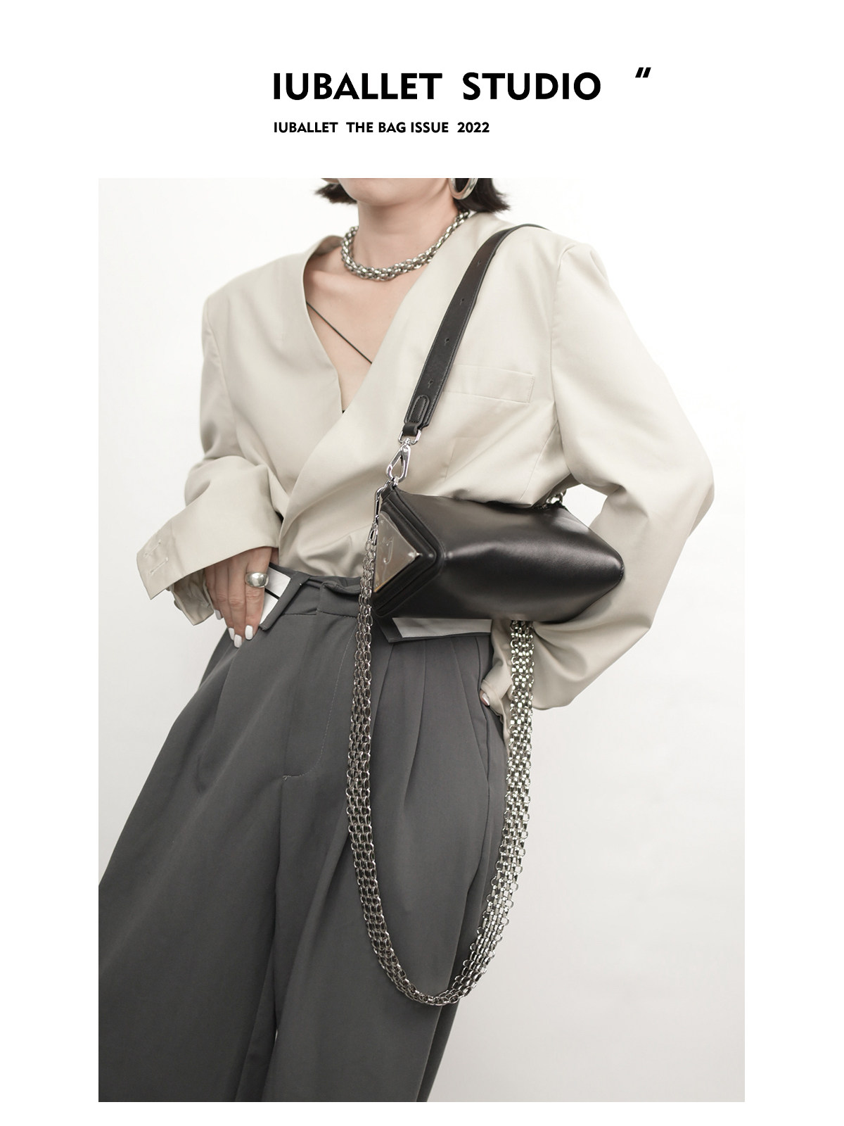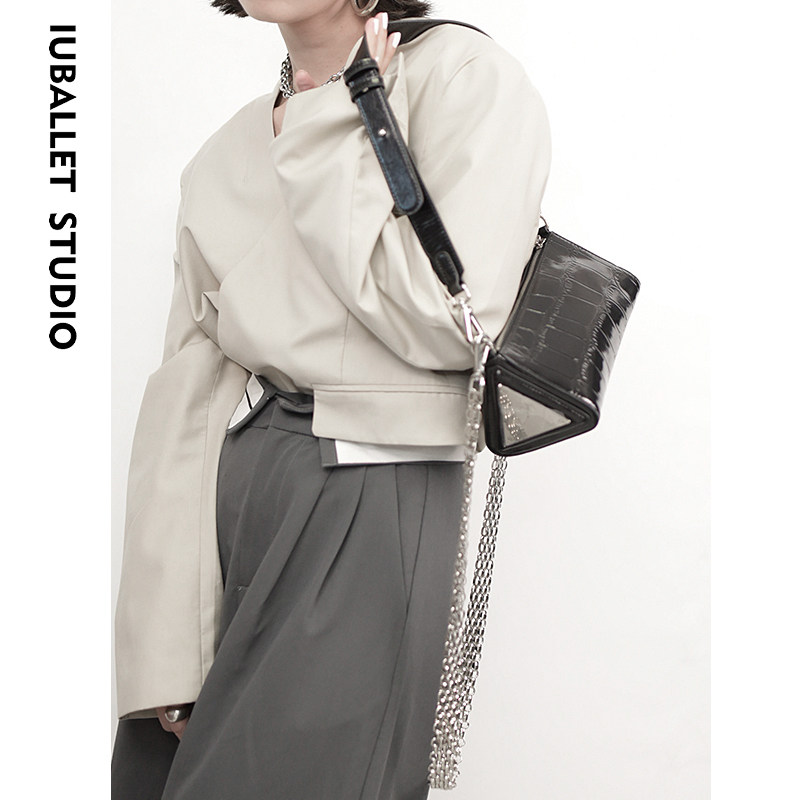 IUBALLET2024秋冬新品黑色手提斜挎单肩时尚潮流三角包牛皮小包包