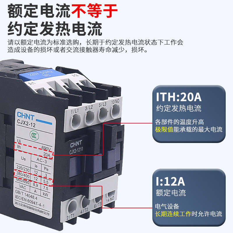 CHNT正泰交流接触器CJX2-1210 1201单相220V三相24 110 380V安12A