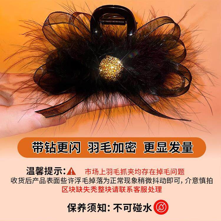 超仙~风欧根纱蝴蝶结羽毛8厘米抓夹气质时尚浪漫毛毛抓夹秋冬新款