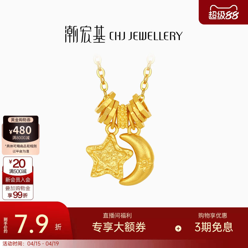 潮宏基好事发生陨石星星黄金项链足金颈饰5G盘缠金生日 计价
