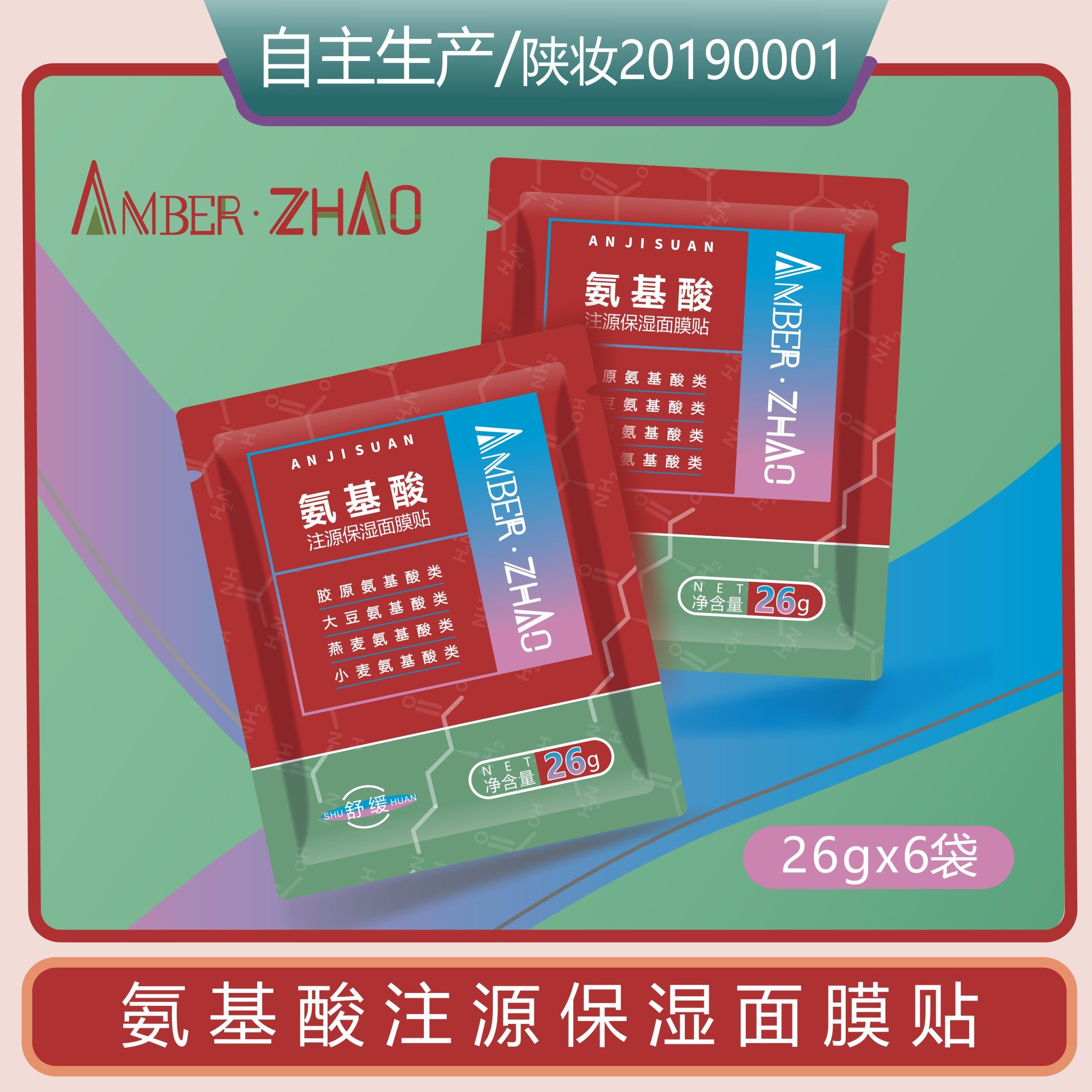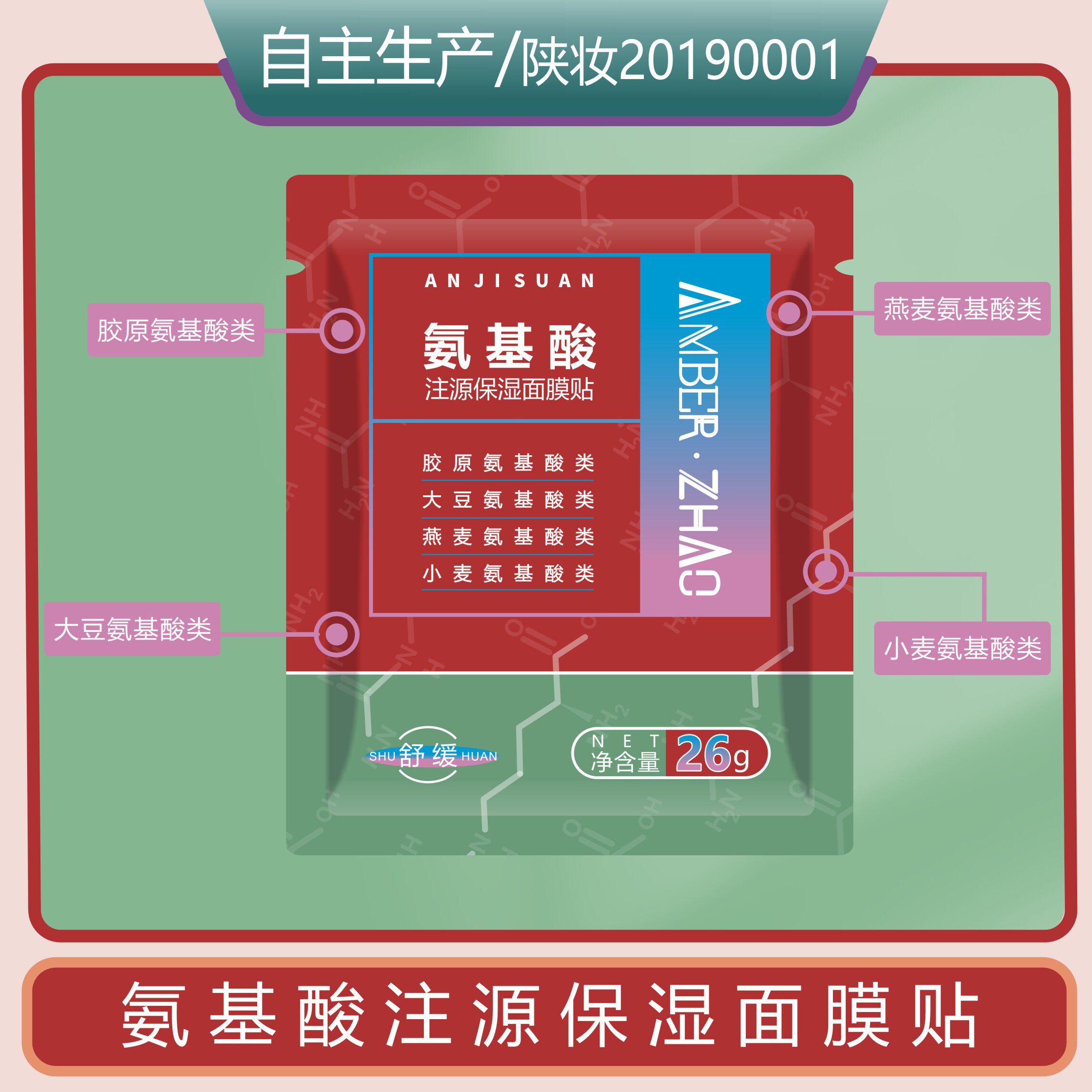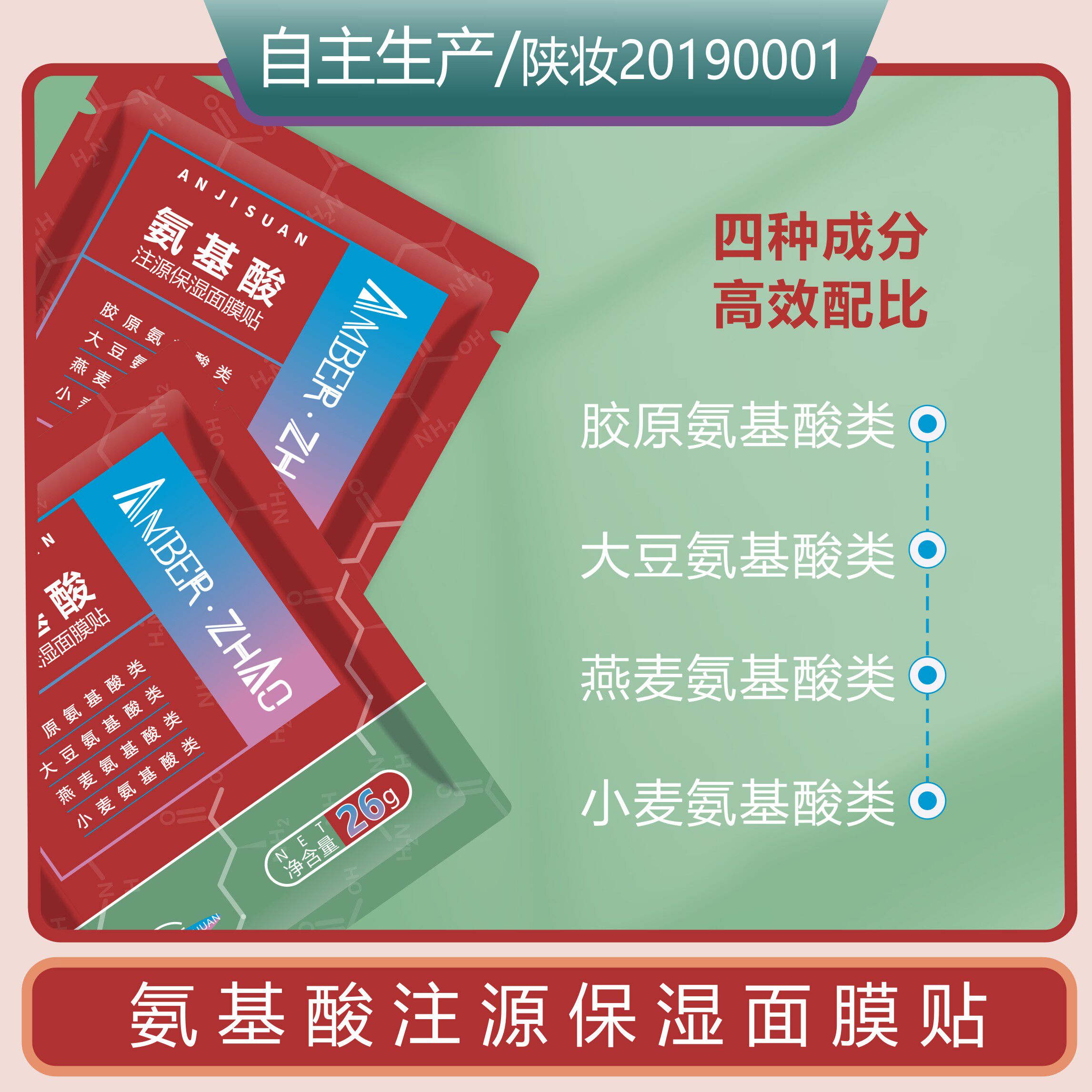 氨基酸注源保湿面膜贴舒缓保湿胶原氨基酸类大豆氨基酸类燕麦