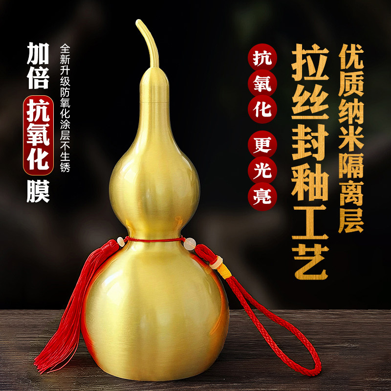 黄铜葫芦摆件八卦黄绳挂件装朱砂空心开口的小铜葫芦客厅装饰品
