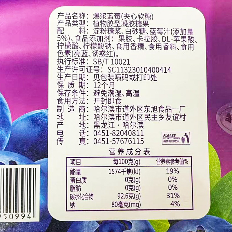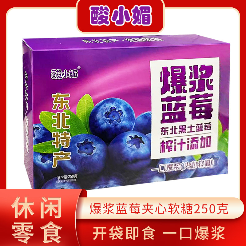 酸小媚蓝莓爆浆软糖250g/盒 夹心软糖一口爆浆独立包装盒装蓝莓味