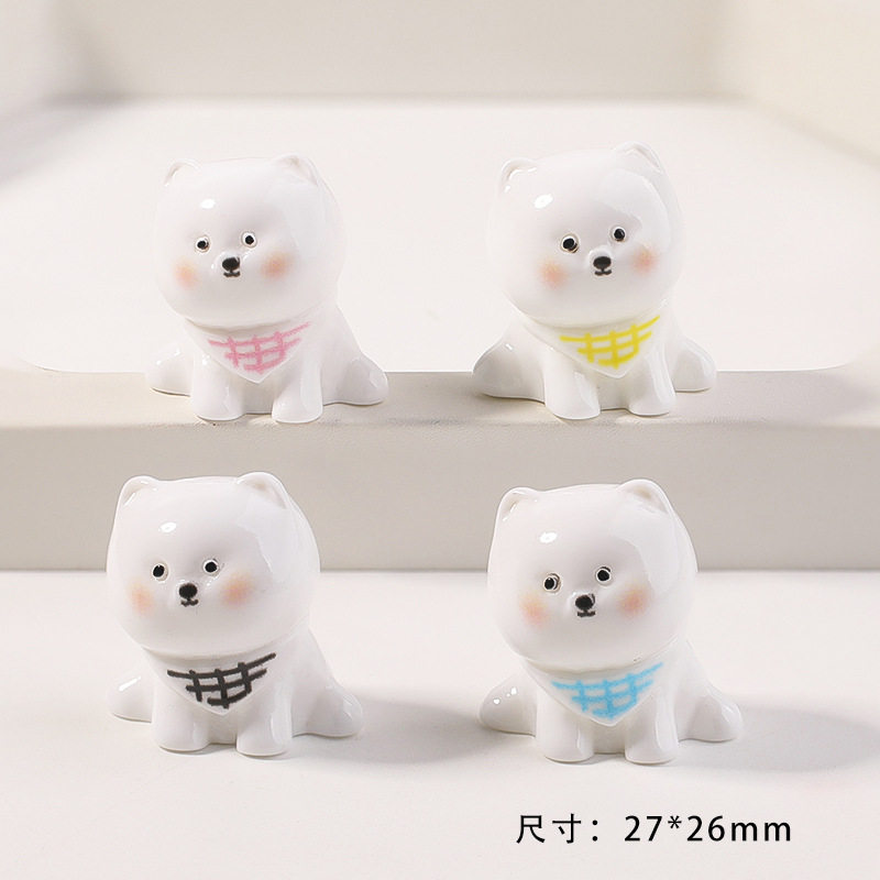 树脂可爱立体白色围巾小狗卡通diy手机壳发饰发夹奶油胶配件摆件